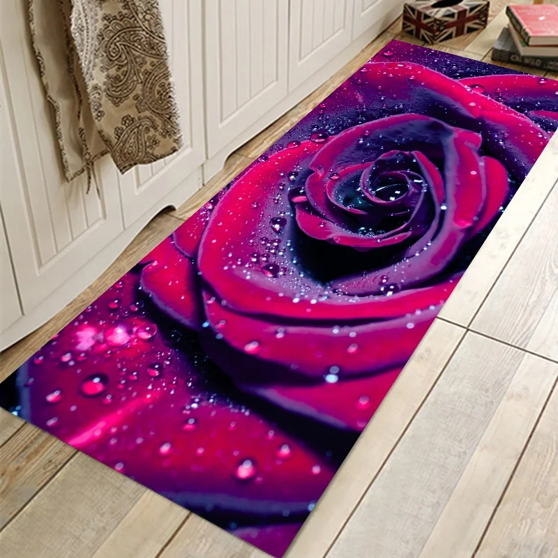 1 шт. нескользящий кухонный коврик, коврик, Придверный коврик, темно-красный, с цветами розы, дверные коврики, ковер, комнатный напольный коврик, домашний декор