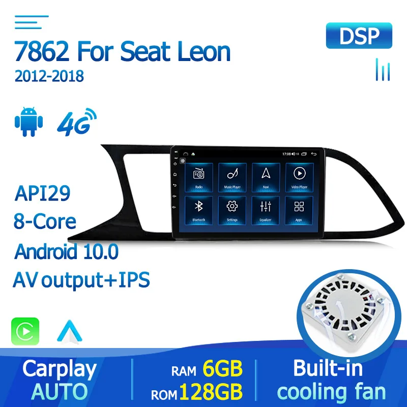 Автомобильный радиоприемник, мультимедийный плеер, IPS экран, 4G + WIFI, Android 10, DSP, для Seat Leon MK3, 2012, 2013, 2014, 2016, 2015, 2018-, BT, головное устройство, GPS, FM