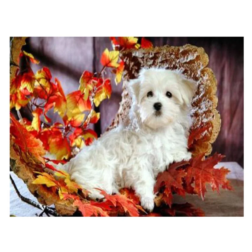 Милые животные DIY Алмазная картина мальтийские собаки вышивка 5D домашний деко белая собака полный квадратный круглый стразы L0012
