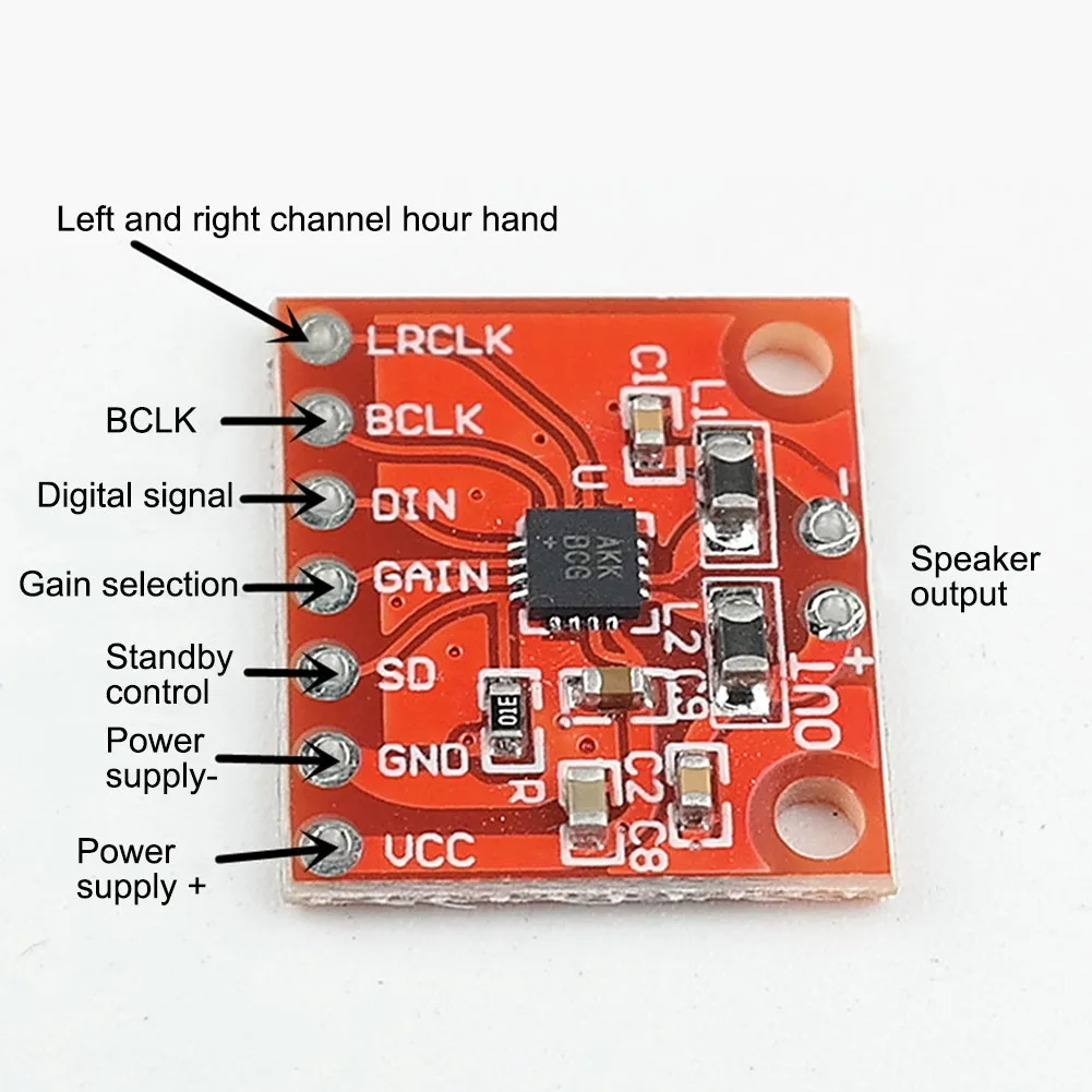 Использование микросхемы усилителя мощности цифрового аудио класса D MAX98357, небольшой размер, легко организовать, выход до 3 Вт, из-за использования цифрового аудио входа I2S, высокое качество аудио опыт может быть получен, подходит для различных I2S цифровой аудиовыход продукции приложений, таких как ESP32 Модуль платы развития, I2s цифровой модуль аудиовыхода и так далее.