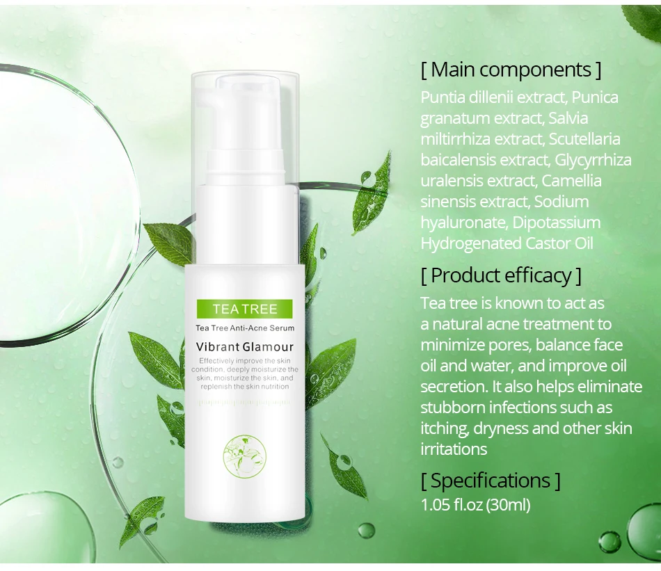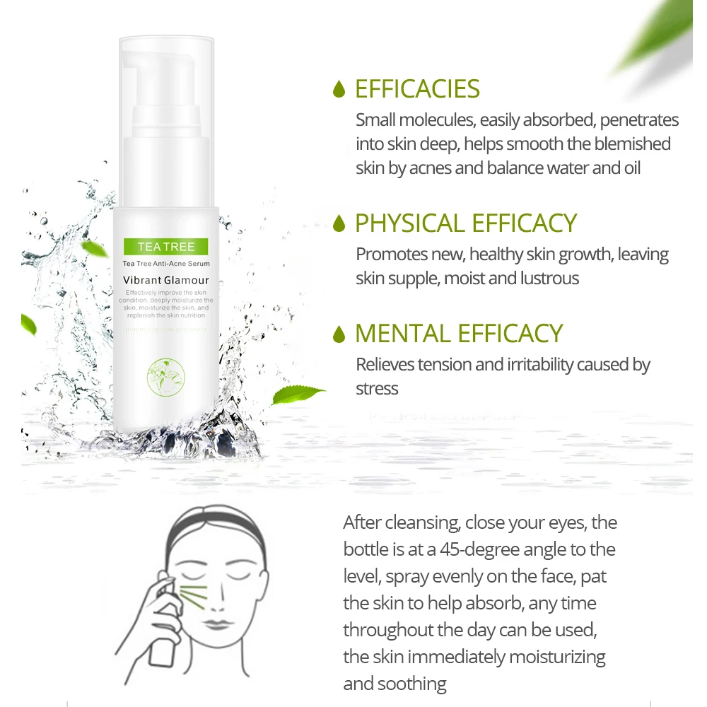 Яркие Гламурные Чай дерево анти-акне Сыворотки воды контроль выработки кожного жира акне тонер лечение шрамов крем для молодежи акне уход за кожей лица Уход за кожей 30 мл