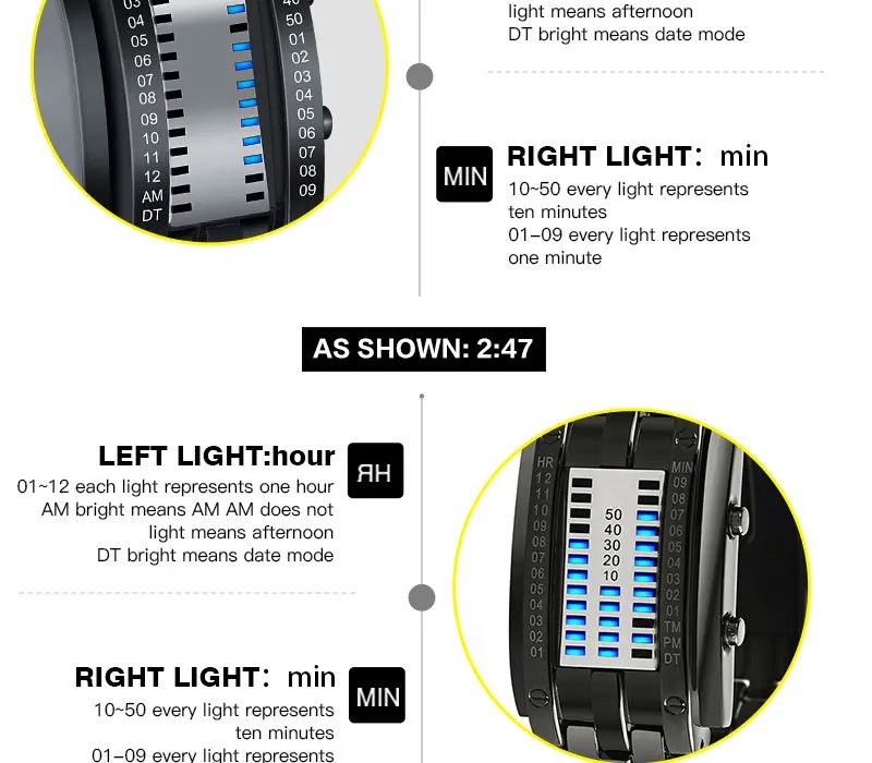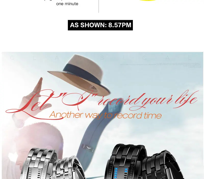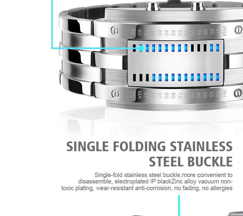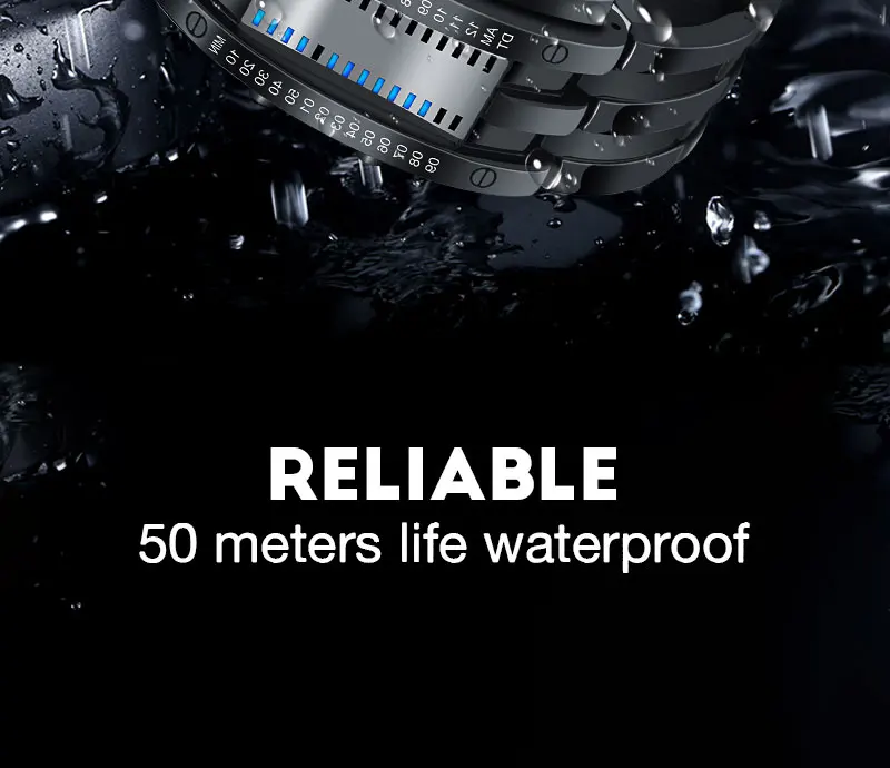 Креативный дизайн ▪Пол: мужчин, женщин и мужчин ▪Механизм: Цифровой ▪Материал корпуса: сплав ▪Длина ремешка: 23 см ▪Тип застежки: Застежка-браслет ▪Водонепроницаемость: 50 м ▪Диаметр циферблата: 30 мм ▪Материал циферблата: стекло ▪Материал ремешка: сплав ▪Ширина ремешка: 30 мм ▪Чехол Толщина: 14 мм ▪Характеристики: задний светильник, водонепроницаемость 50 м, ударопрочность, полный календарь, светодиодный дисплей