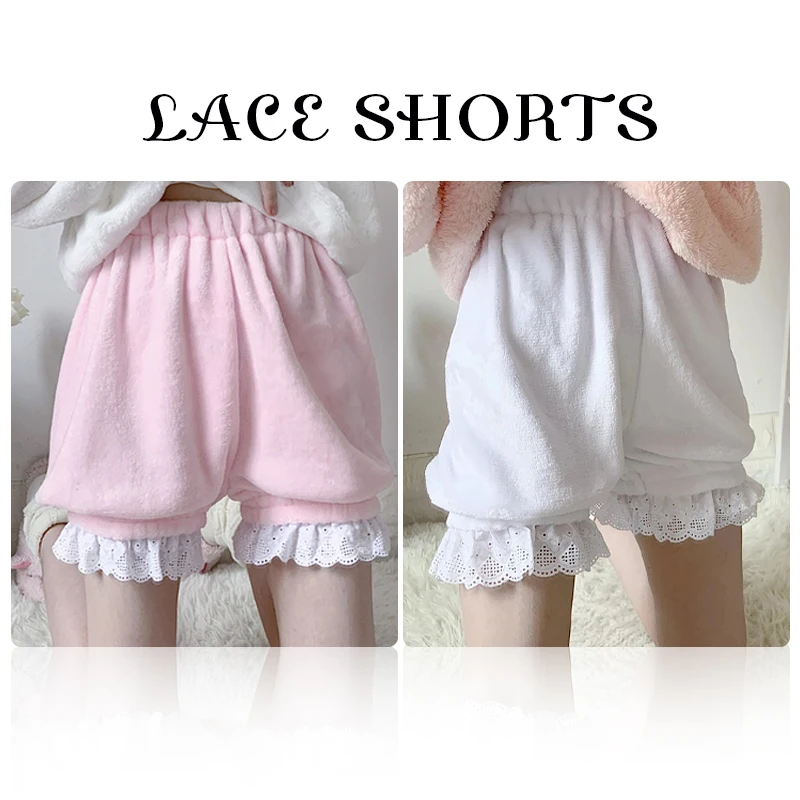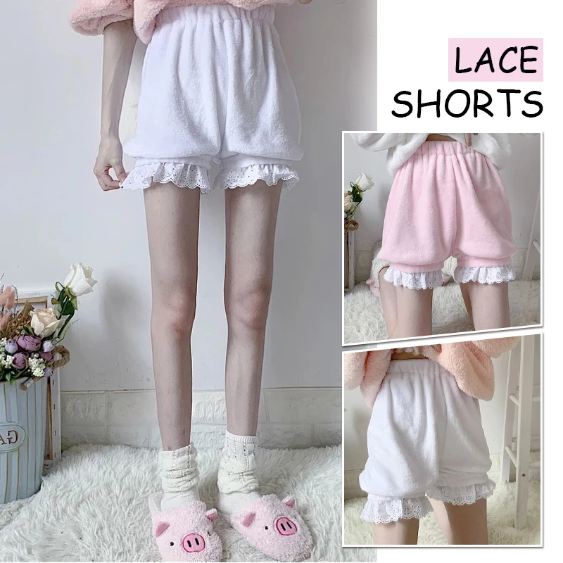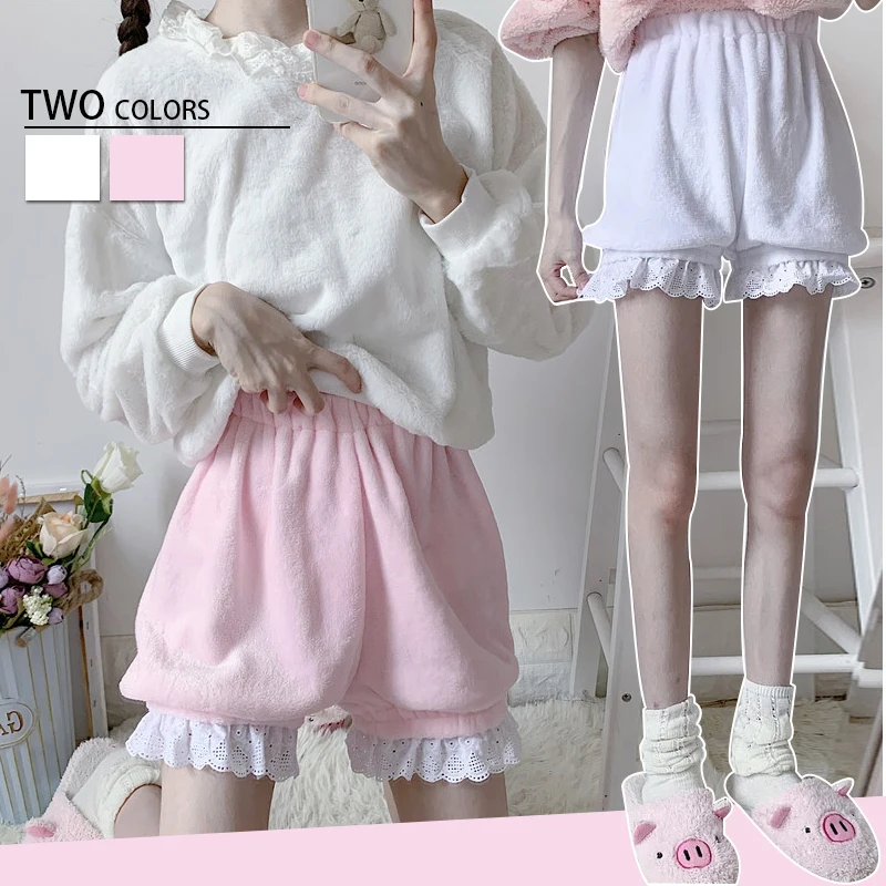 Шорты JK женские зимние с высокой талией, милые теплые бархатные кружевные, с плюшевой подкладкой, розовые, белые