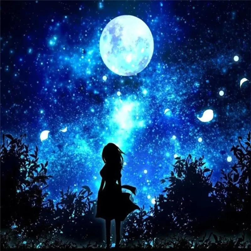 Алмазная вышивка с Луной, Алмазная мозаика 5D сделай сам с круглыми стразами, украшение для дома, подарок
