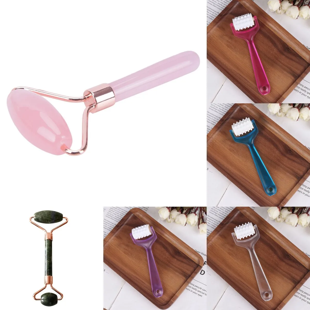 Роликовый нефритовый массажер для похудения, подтяжка подбородка, роллер для красоты, массажер для лица, розовый кварц, 1 шт.