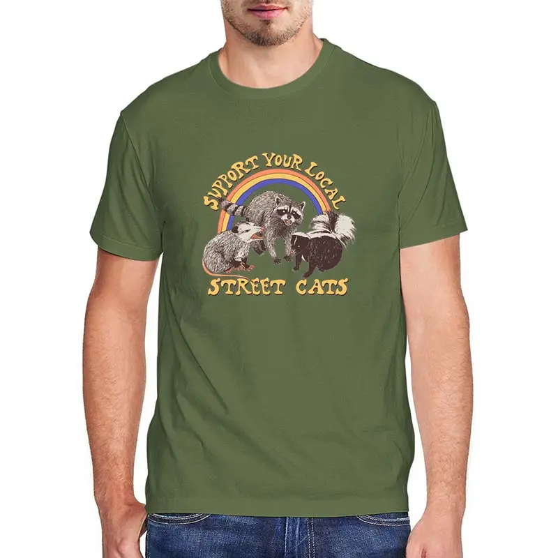 100 хлопок, уличная кошка, Мужская футболка, унисекс, одежда, поддерживает вашу местную улицу, рубашки для кошек, повседневные мужские топы, большие размеры, уличная одежда, 3xl