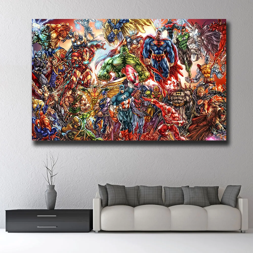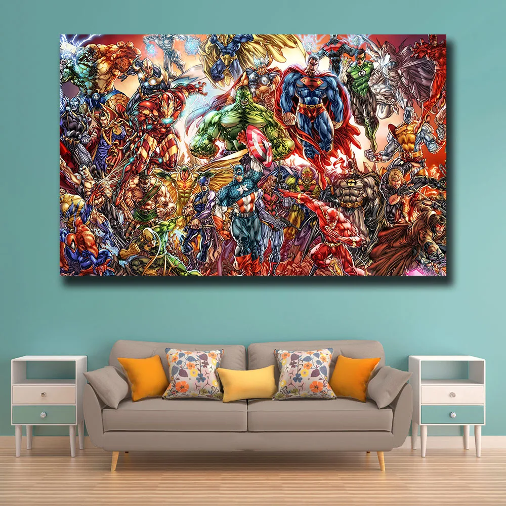 Настенная картина с забавным принтом Мстителей и супергероев, карти...
