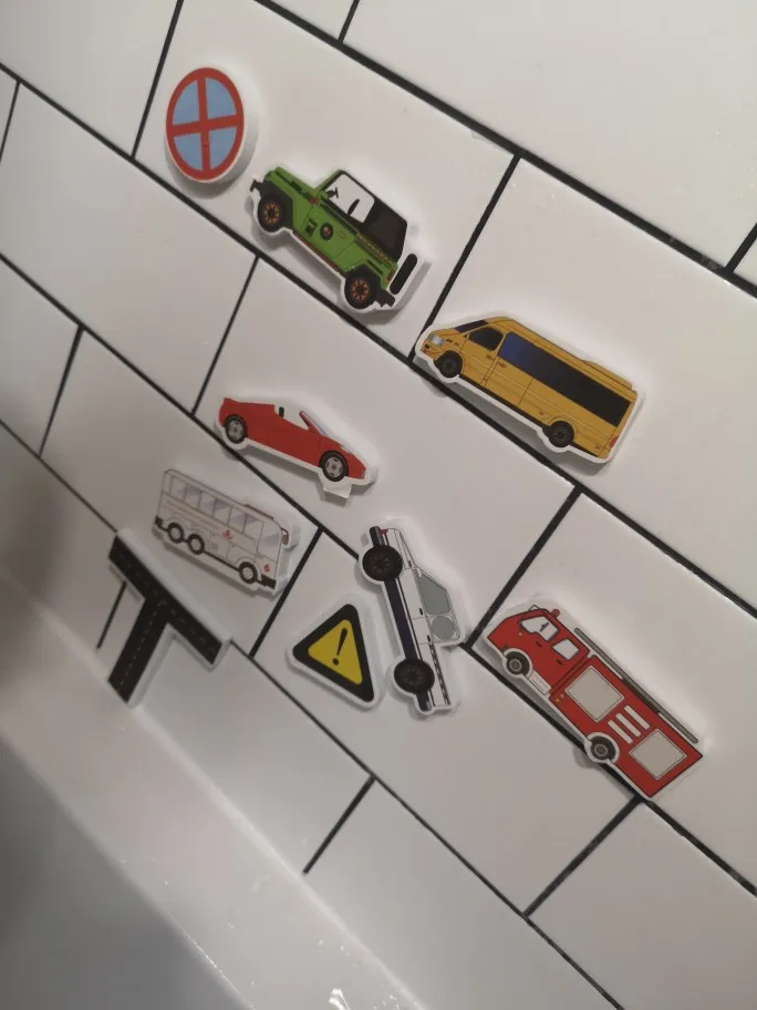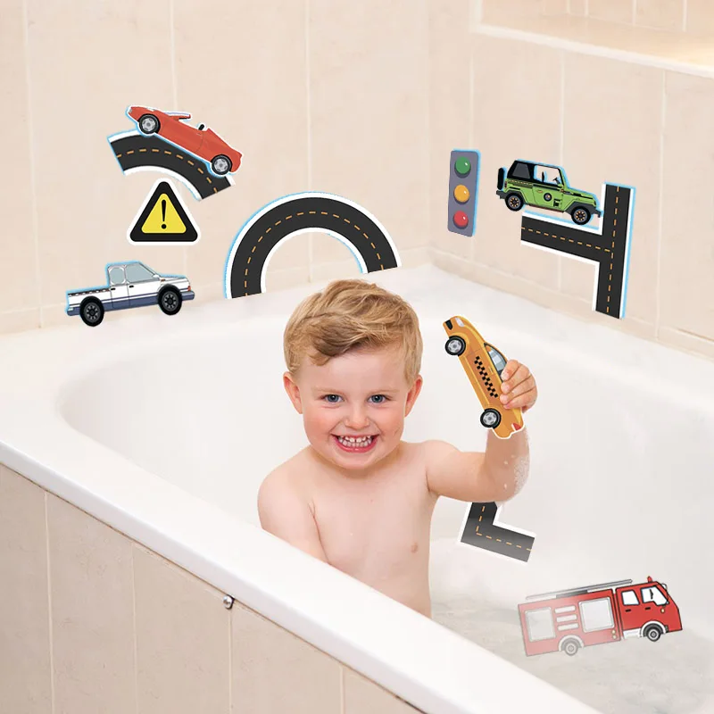 Дорога, машинки, всё работает, приклеивается к стенам в ванне после намокания