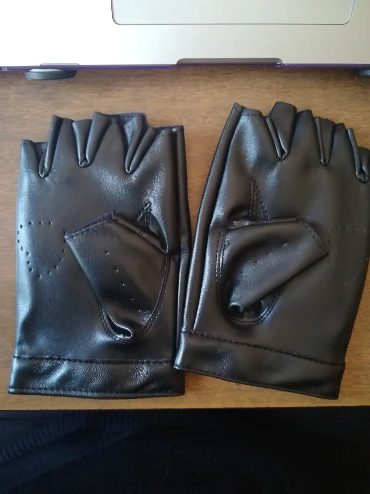 Перчатки кожаные, черные, с открытыми пальцами, в стиле панк, хип-хоп, зимние