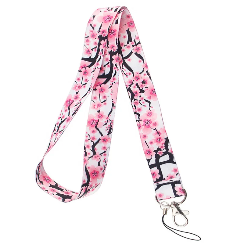 Брелок для ключей, шнурок с розовыми цветами, для ключей, USB-карт, ID-карт, аксессуар
