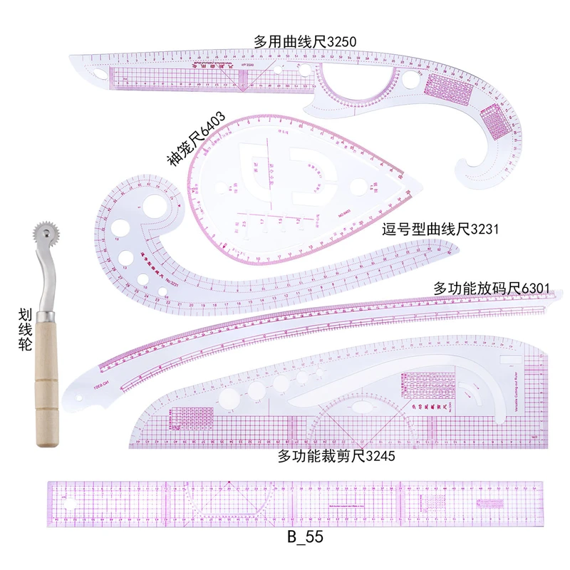 Набор из 7 предметов метрических одежда кривой швейная чертеж линей...