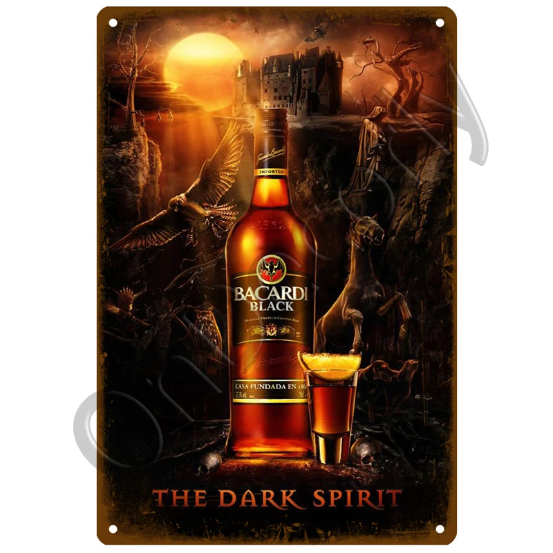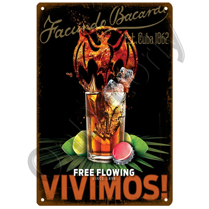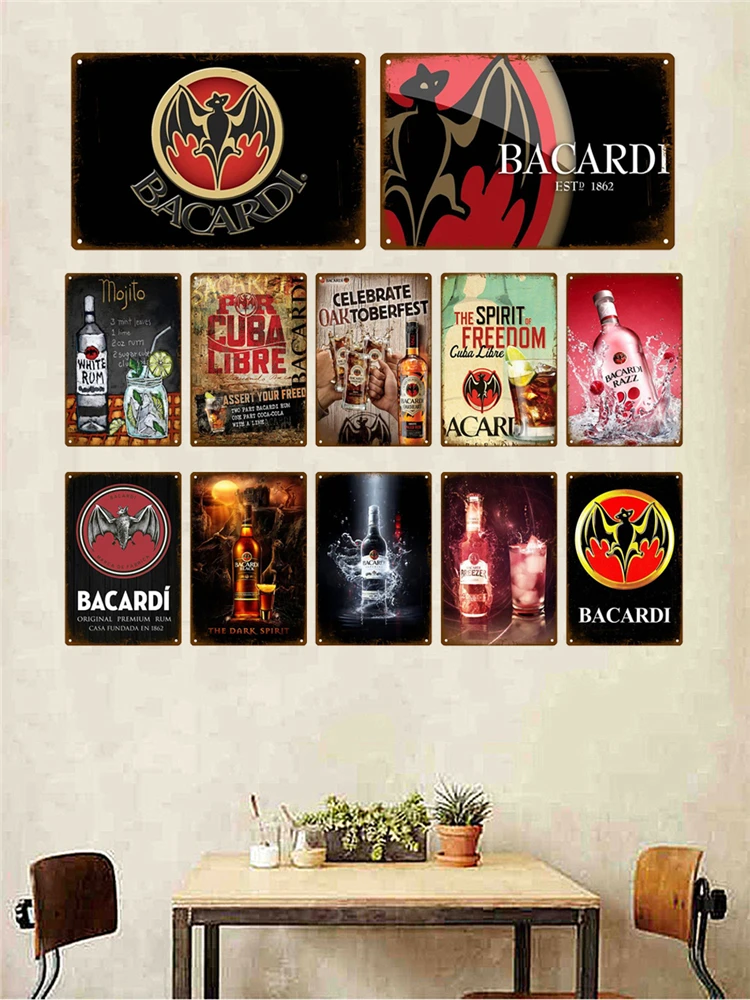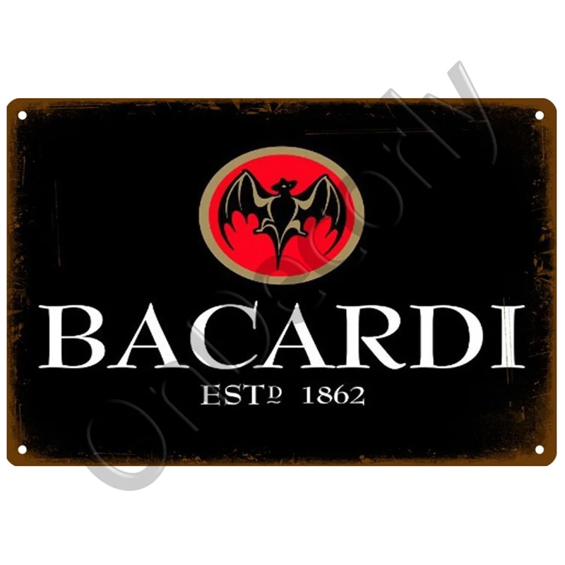 Металлическая табличка Bacardi в стиле ретро, Жестяная Табличка для виски, Бельгии, пива, металлическая декор для стен в винтажном стиле декоративная табличка, мужская пещера, потертый шик 2