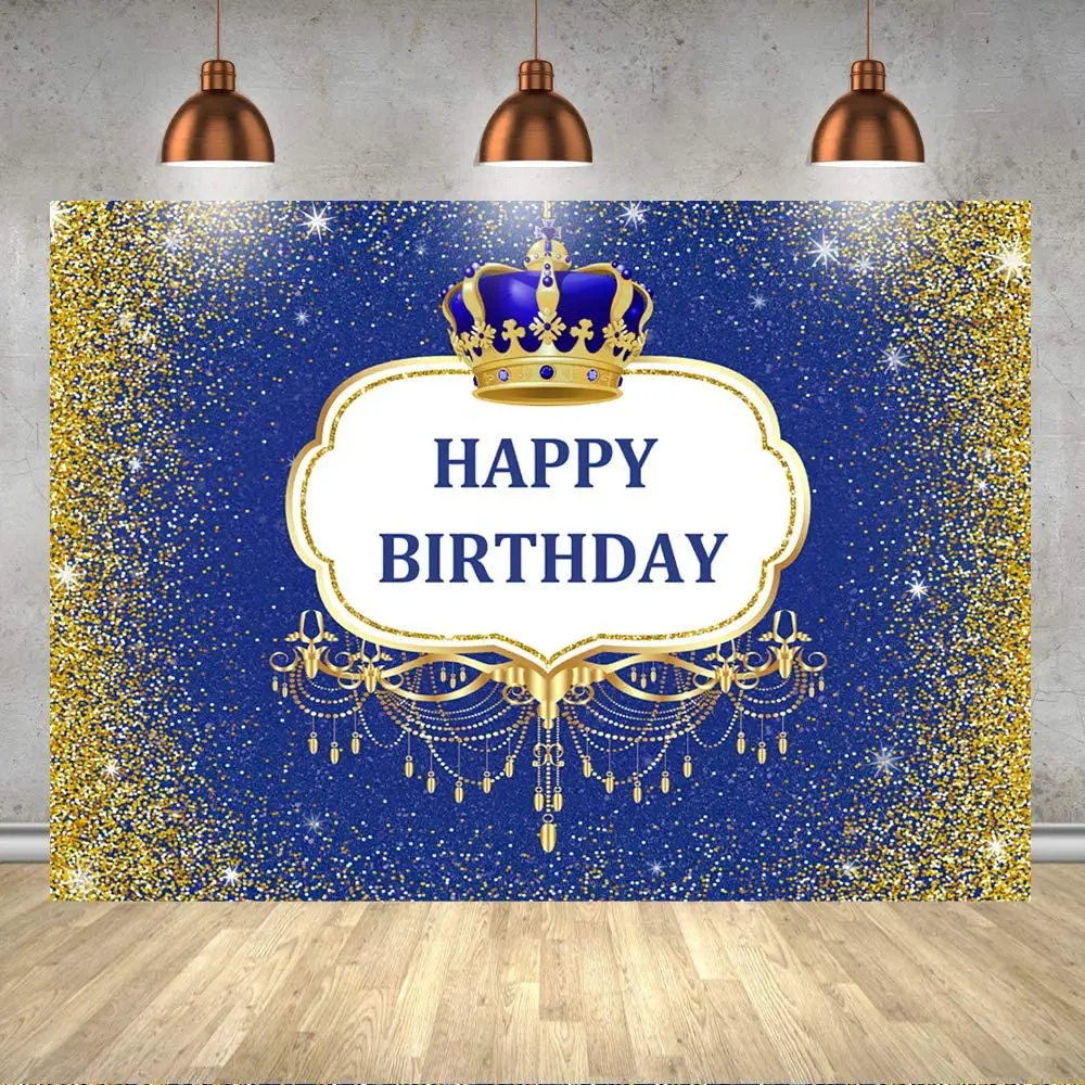 Фон для фотосъемки с принцом императорской короной на день рождения блестящие золотые блестки фото синие королевские бриллианты фон