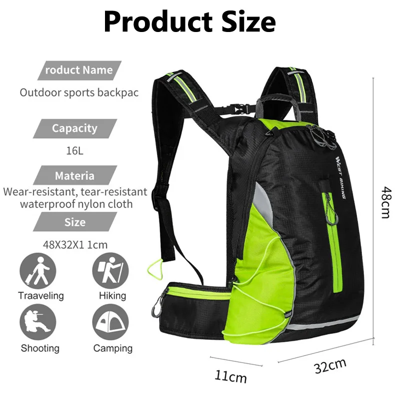WEST BIKING 16L портативный рюкзак для велоспорта, дышащий водонепр...