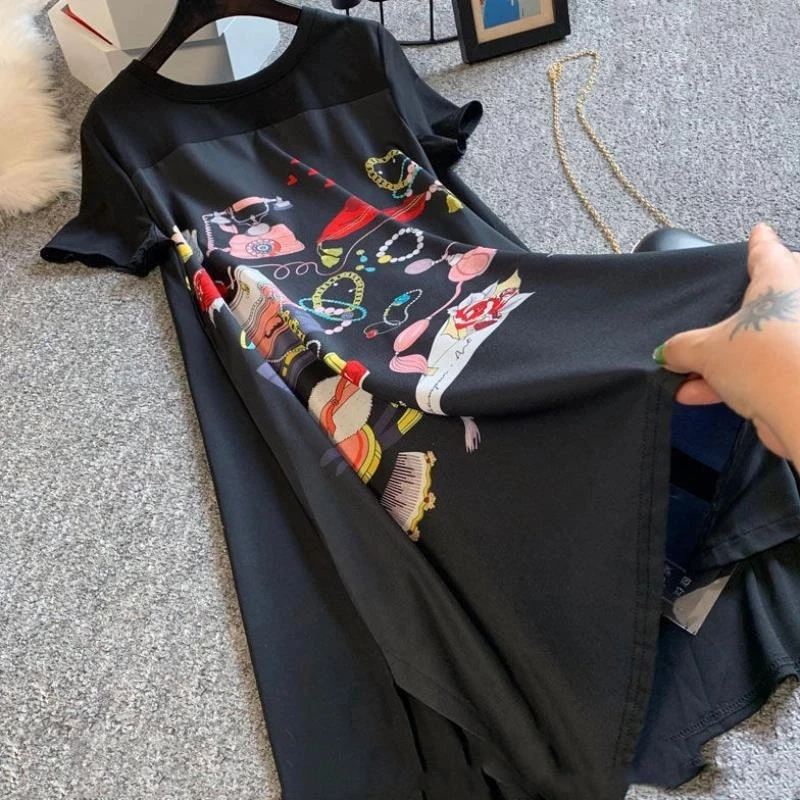 Женское платье с принтом, летнее свободное, в стиле пэчворк, модель LJ3114, размера плюс