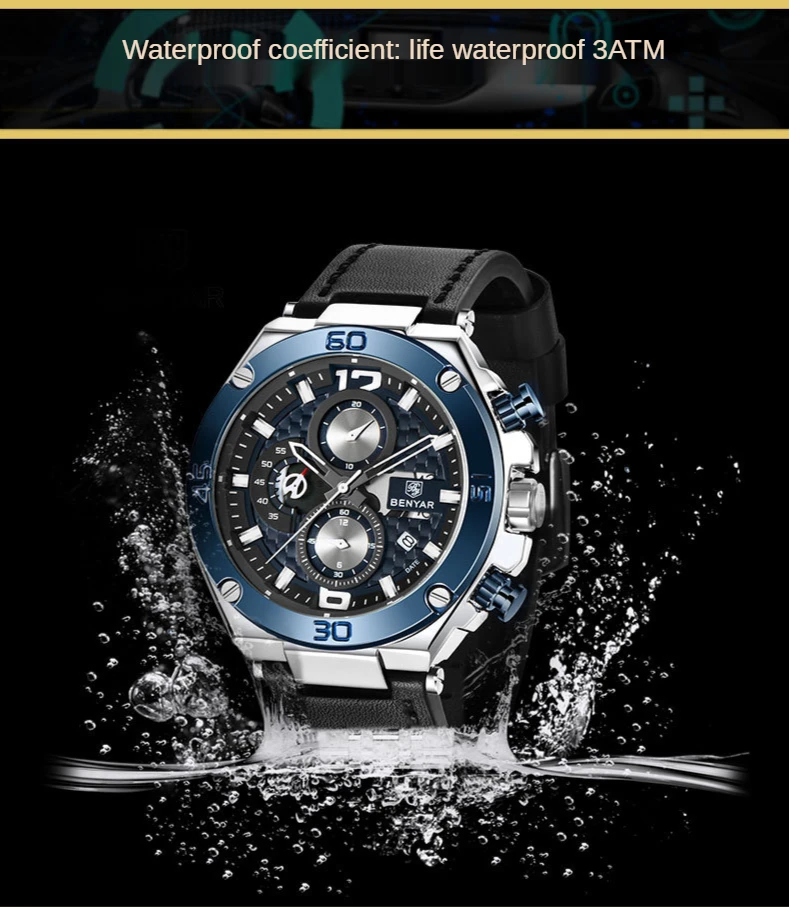 Часы наручные BENYAR Мужские кварцевые, брендовые Роскошные модные,...