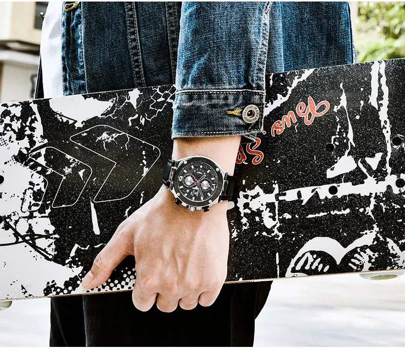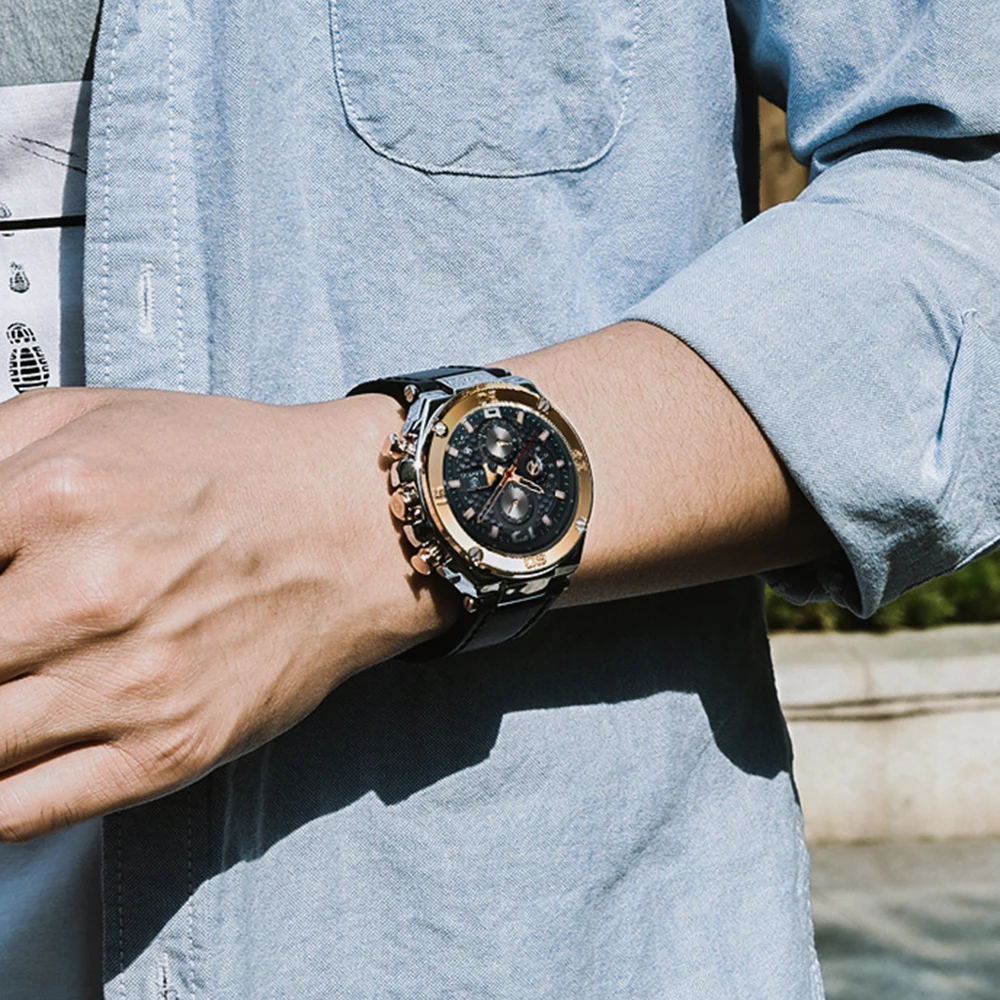 Часы-хронограф мужские Кварцевые водонепроницаемые с кожаным ремешком