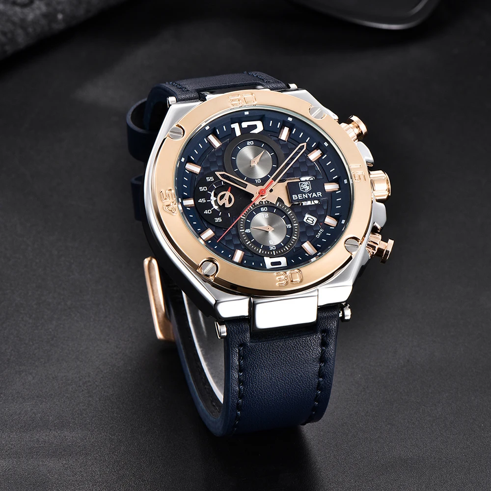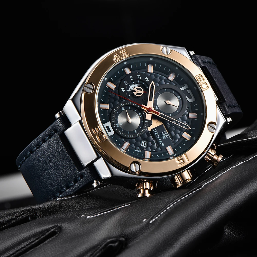 BENYAR брендовые Роскошные мужские часы с кожаным ремешком, кварцев...