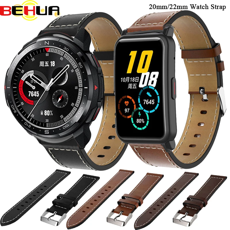 20 мм22 мм кожаный ремешок для часов Huawei Honor Watch ES GS Pro Smartwatch Браслет с булавкой Correa Браслеты Аксессуары