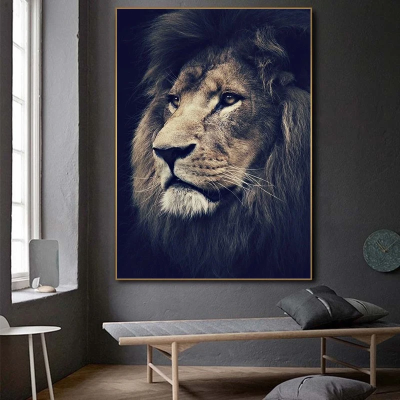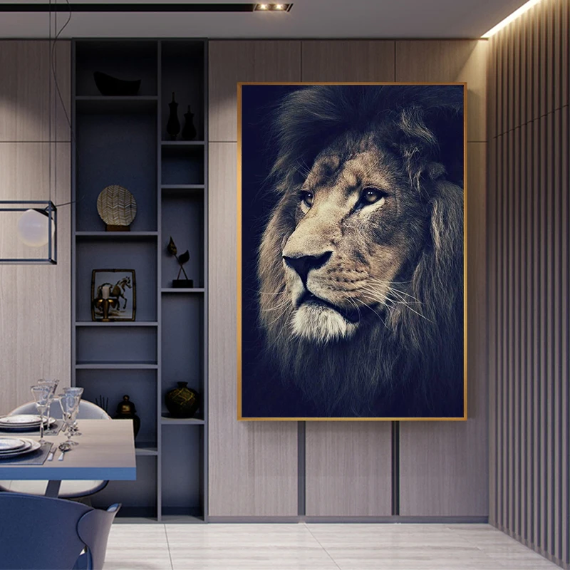 Настенная картина с изображением сильного льва для гостиной, домашн...