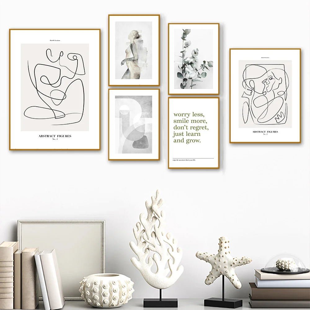 Абстрактные линии Drewing Body Face Quotes Wall Art в скандинавском...