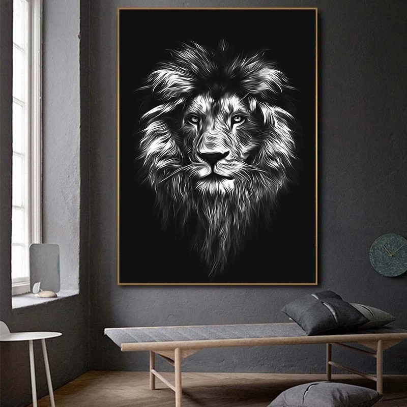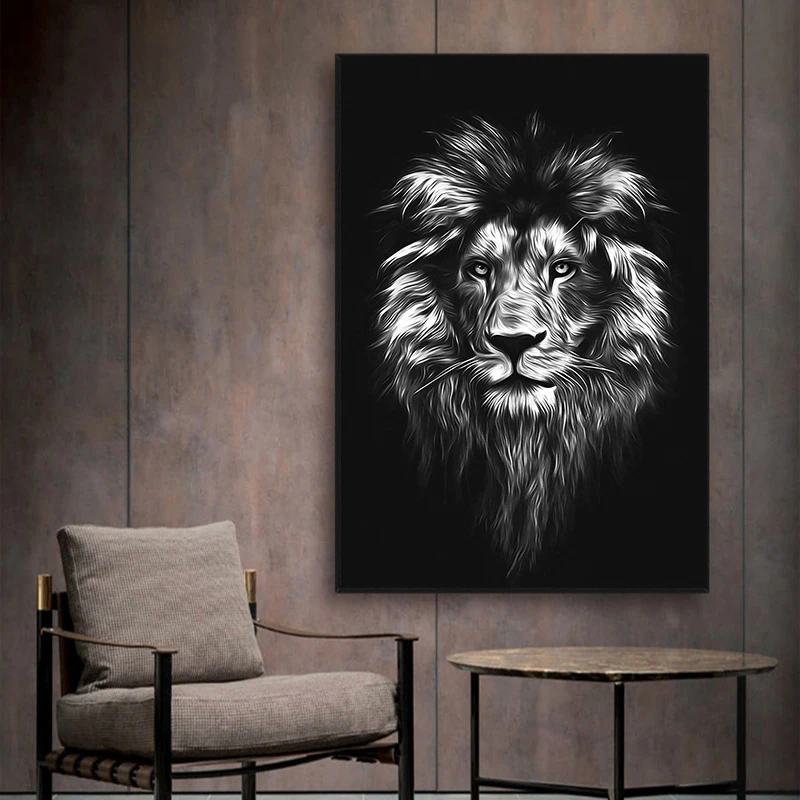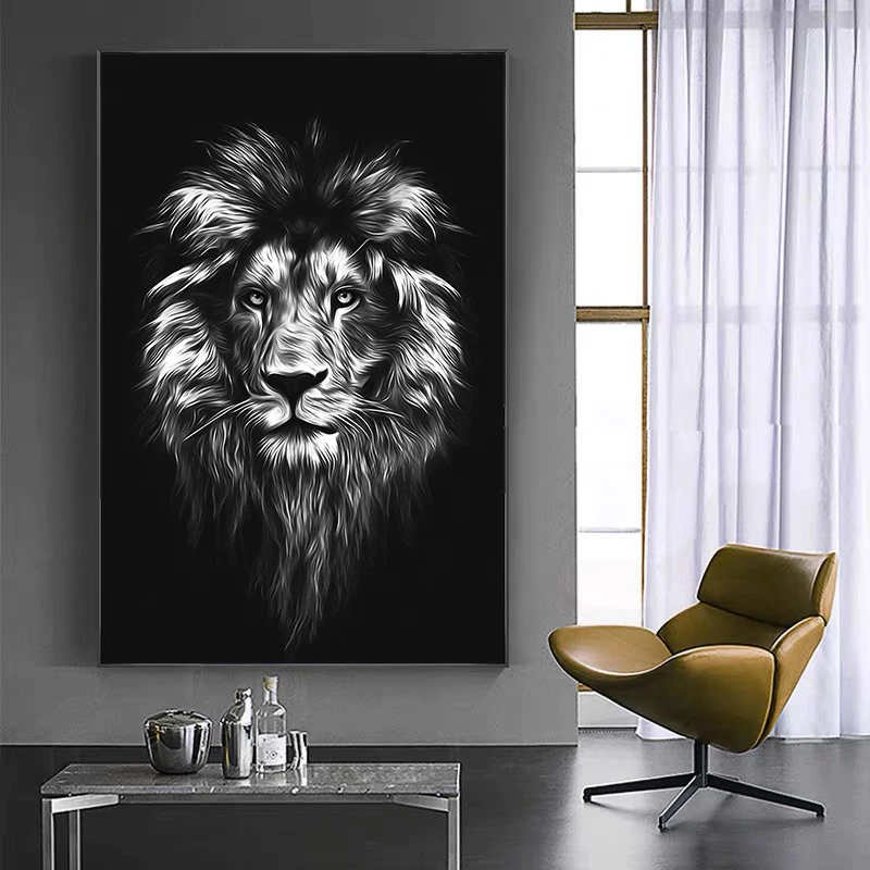 Абстрактное искусство животное лев черно-белая Картина на холсте нордический стиль внутреннее украшение Искусство Настенная картина (без рамки)