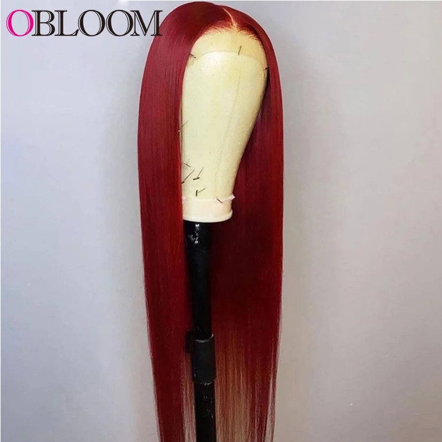 Прямые красные 13x 4 парики из человеческих волос на сетке спереди, парик с глубокой частью, предварительно выщипанные бразильские человеческие волосы без повреждений, парики для женщин с детскими волосами