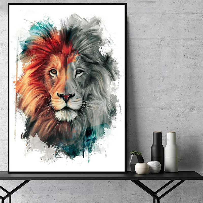 Граффити свирепый лев животных реалистичный Плакат Фреска Семья Спальня Детская комната украшение стены холст искусства (без рамки)