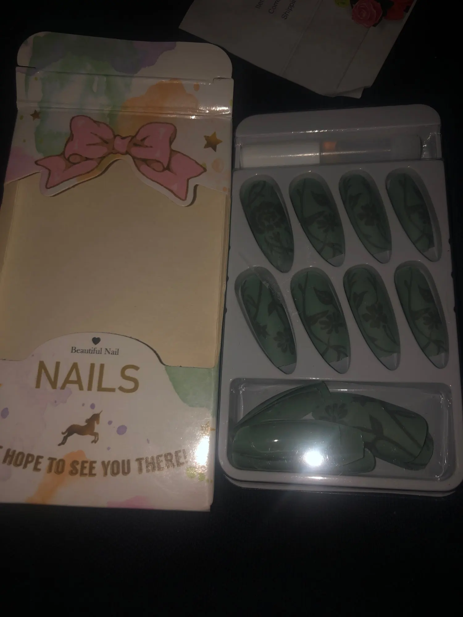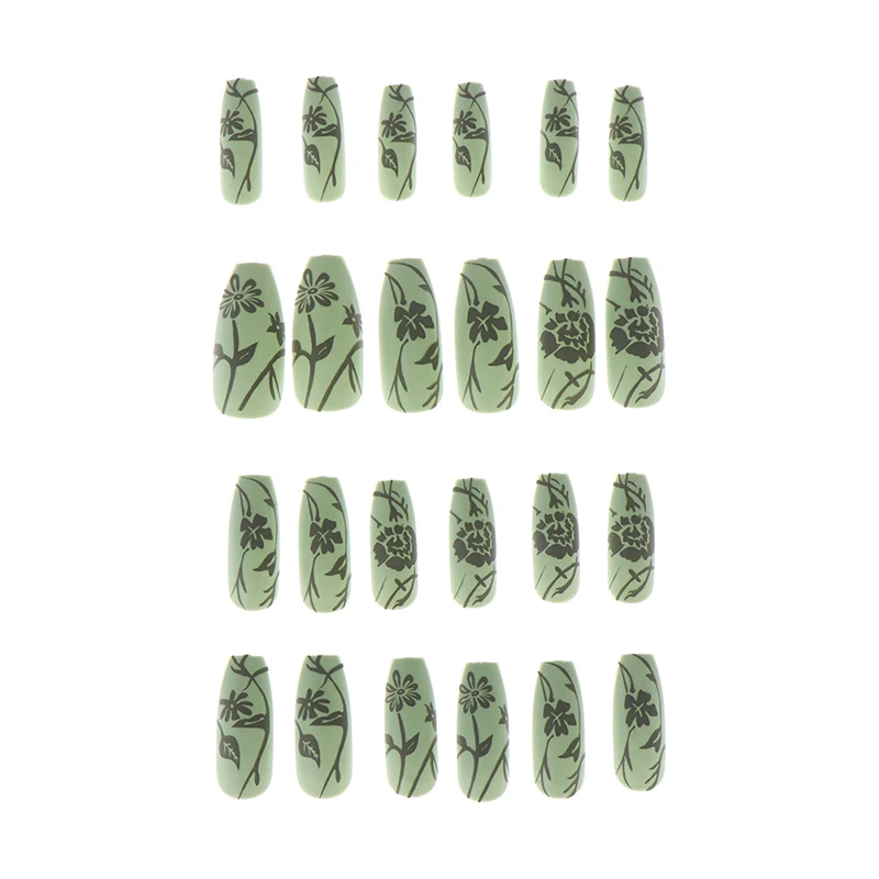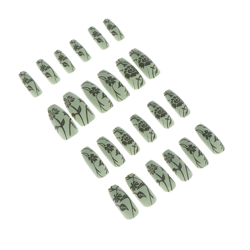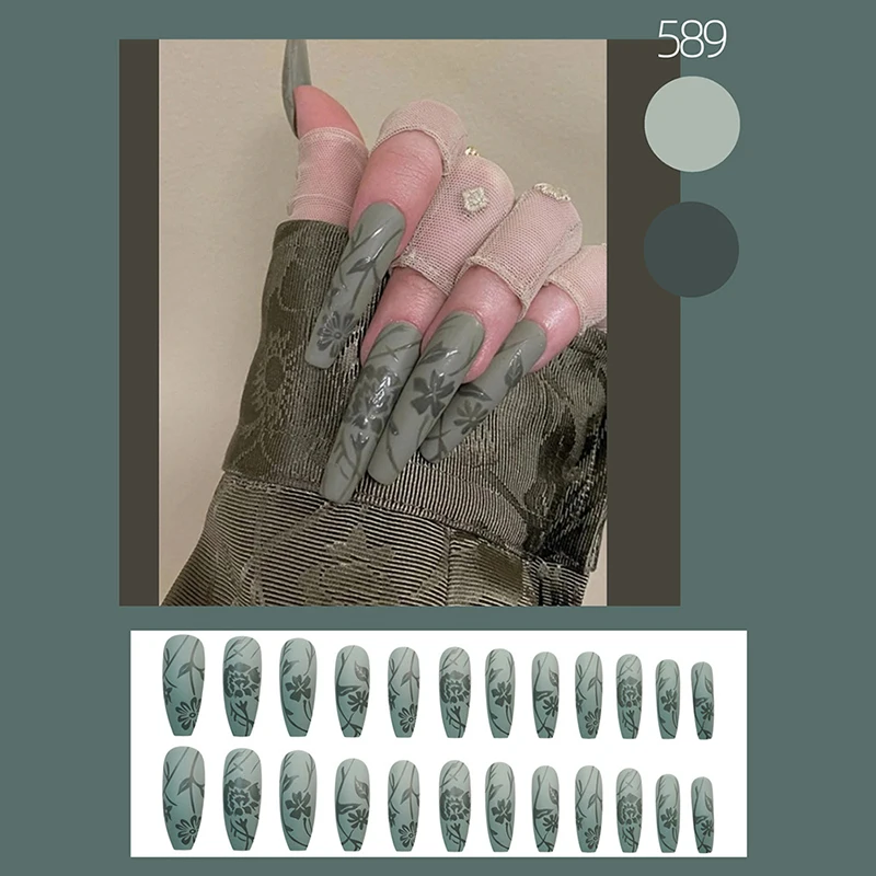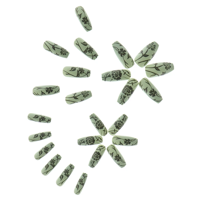 Накладные ногти, 24 шт., в стиле ретро, зеленый цвет, клей для ногтей