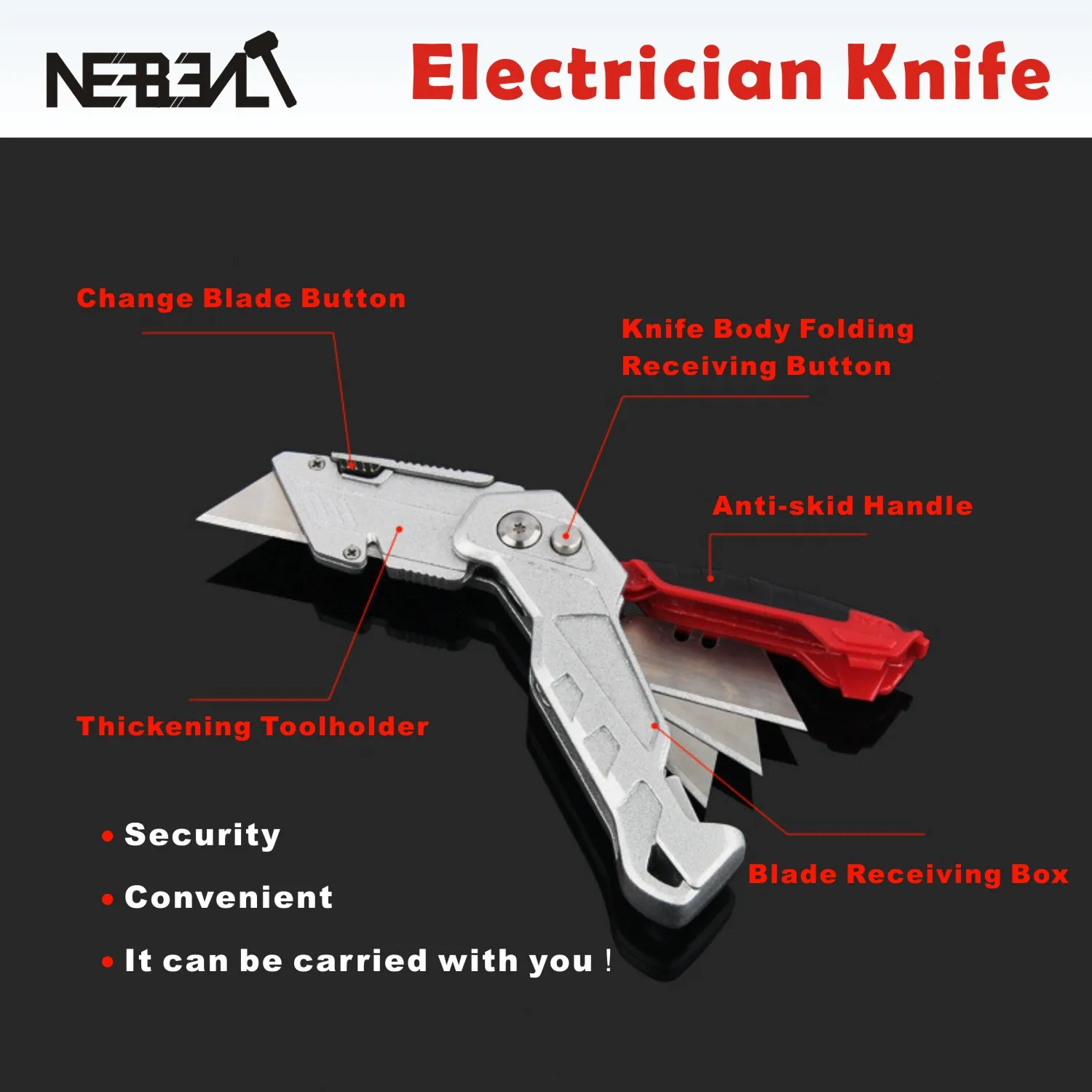 Складной нож электрика, в комплекте 4 стальных лезвия, для резки бумаги, пластиковой трубы, универсальный, удобный для переноски
