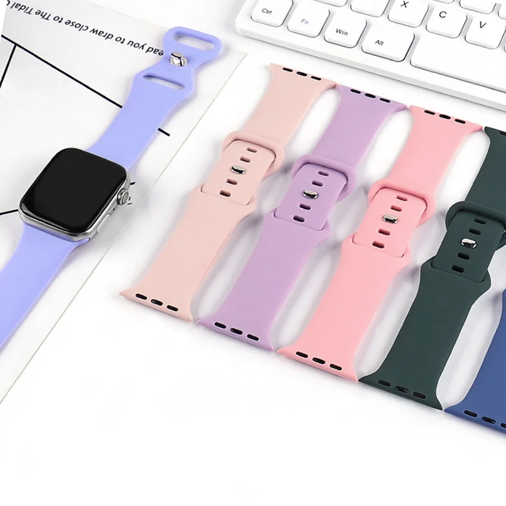 Ремешок силиконовый спортивный для Apple Watch Series 5 4 3 2 1 6 Se, резиновый браслет для смарт-часов iWatch 6 38 мм 42 мм