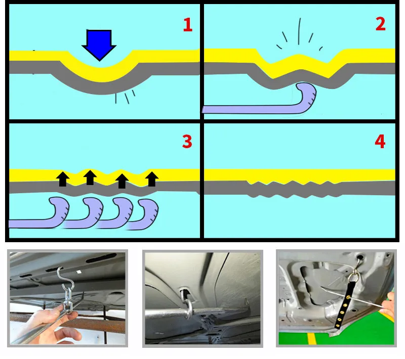 Широко используется-подходит для любых Авто вмятин, ремонт дверных накладок и повреждений от града и других вмятин. Эффективное действие на автомобиль, холодильник, стиральную машину и другие металлические поверхности вмятин.