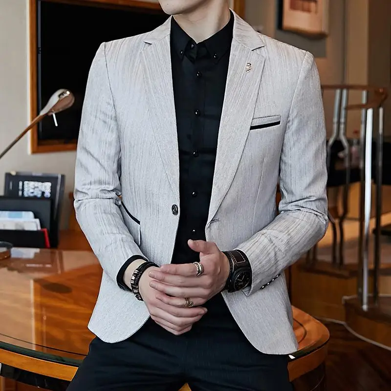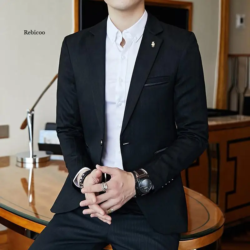 Полосатый пиджак мужской Slim Fit Блейзер Slim Masculino Бизнес Пов...