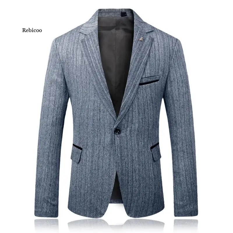 Мужской облегающий пиджак большого размера 5XL, мужской черный, серый деловой мужской костюм на одной пуговице, пиджак в стиле ретро в полоску, мужской брендовый блейзер