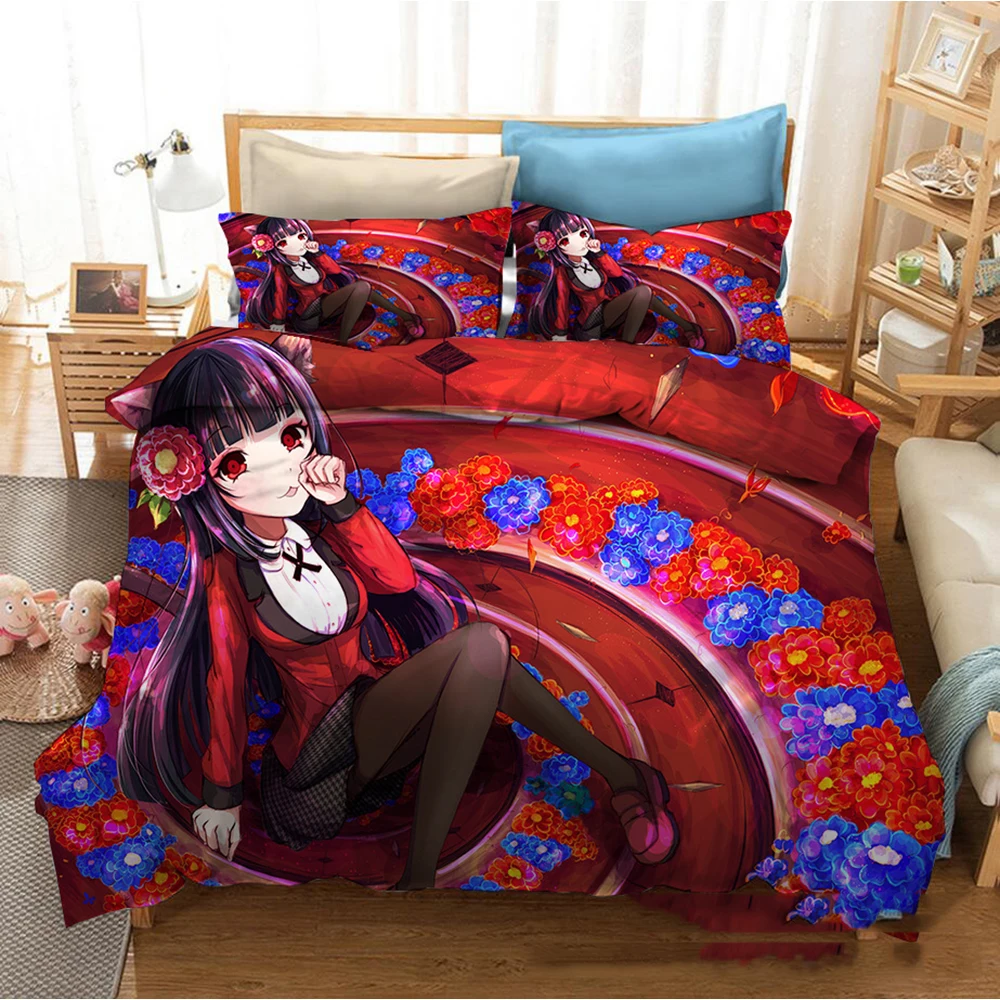 Комплект постельного белья Kakegurui с аниме, пододеяльник и наволо...