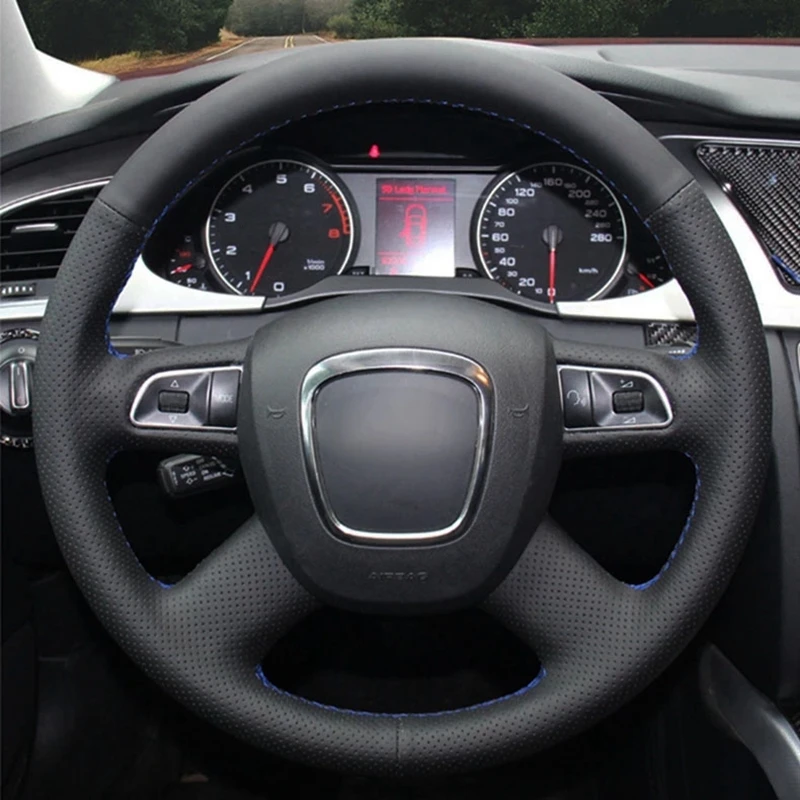 Чехлы рулевого колеса автомобиля черная натуральная кожа для Audi A...
