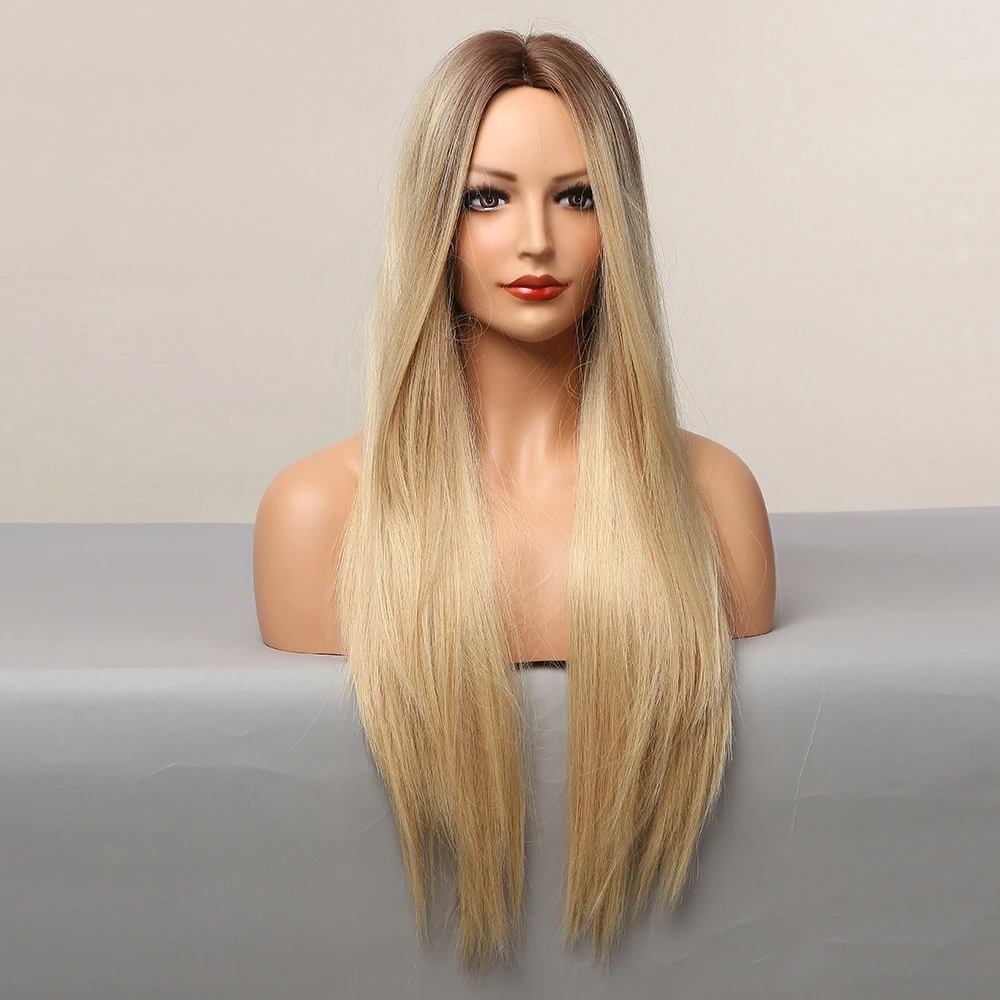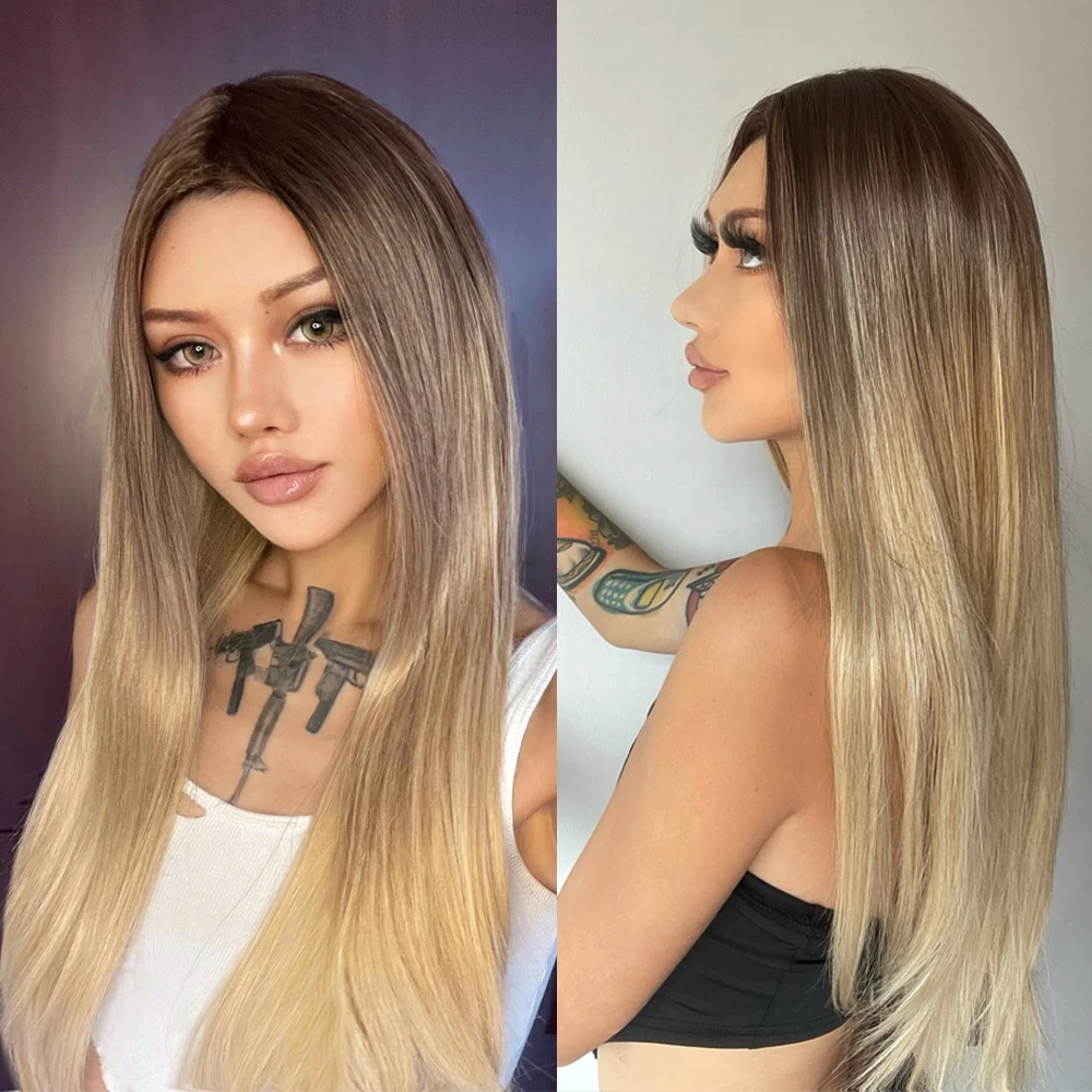 Длинные прямые синтетические парики LOUIS FERRE с эффектом омбре, коричнево-блонд, термостойкие натуральные парики средней длины для ежедневногокосплея для женщин