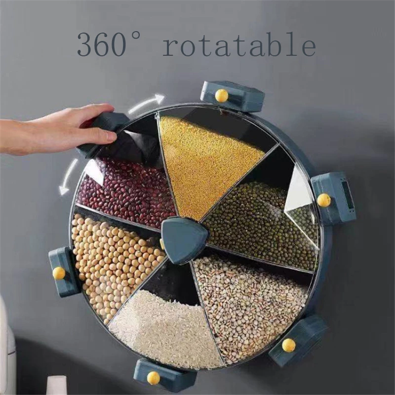 8.5л вращающийся настенный контейнер для хранения зерновых сухих пищевых продуктов, держатель Диспенсера для риса, пластиковые разделенные ячейки, кухонный Органайзер