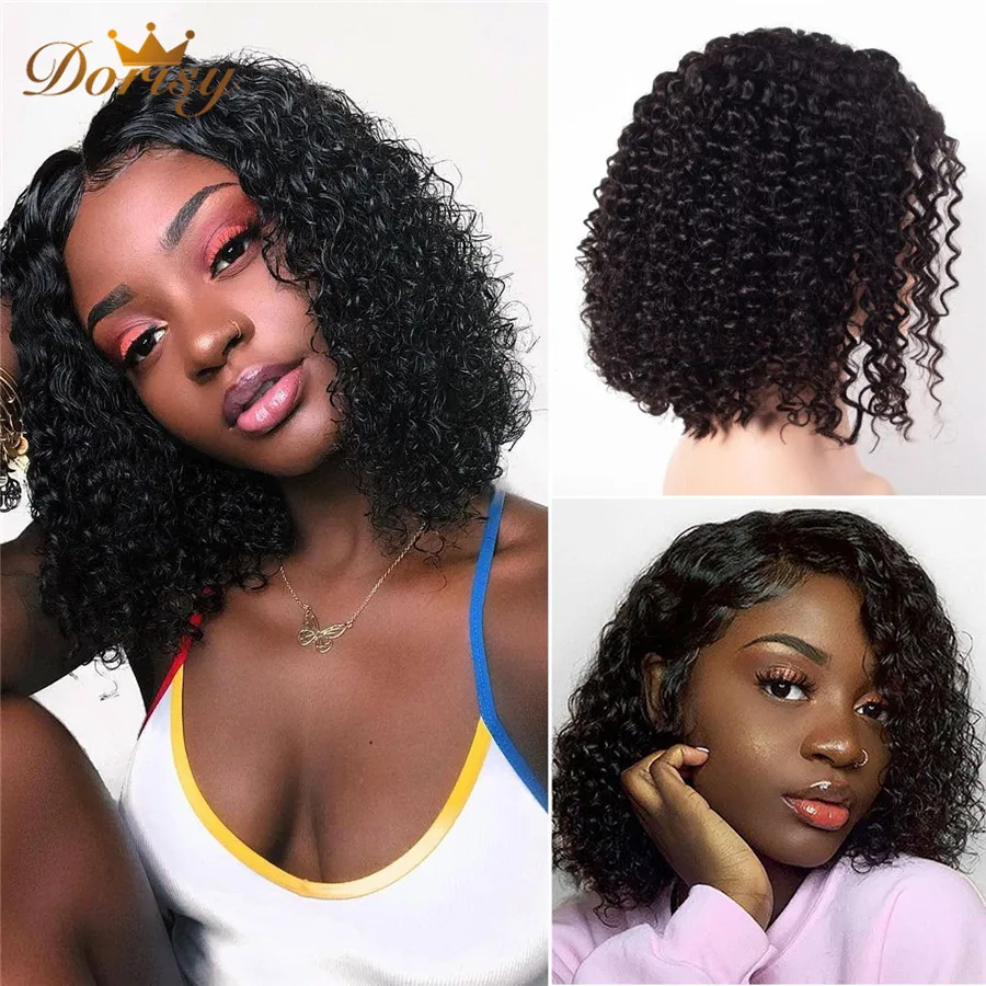 Короткие вьющиеся парики, парики из темных человеческих волос, пари...