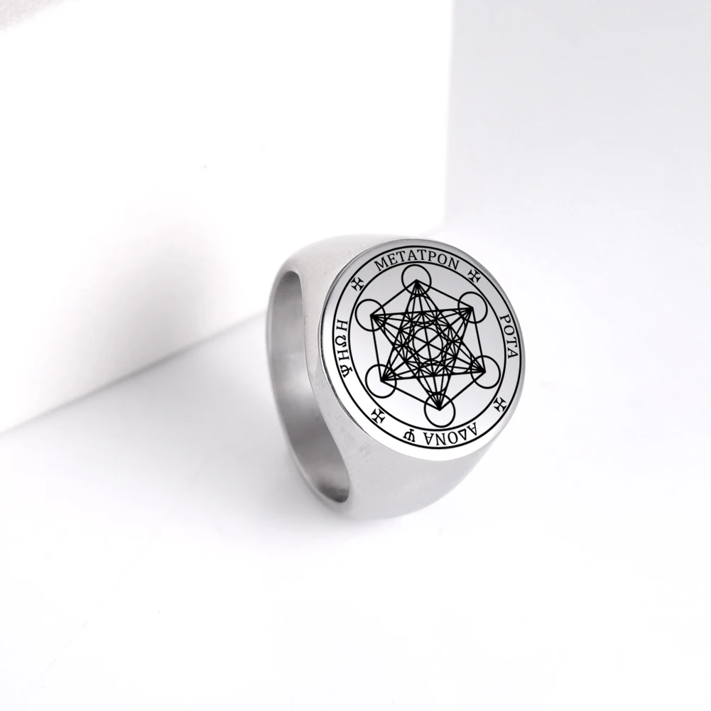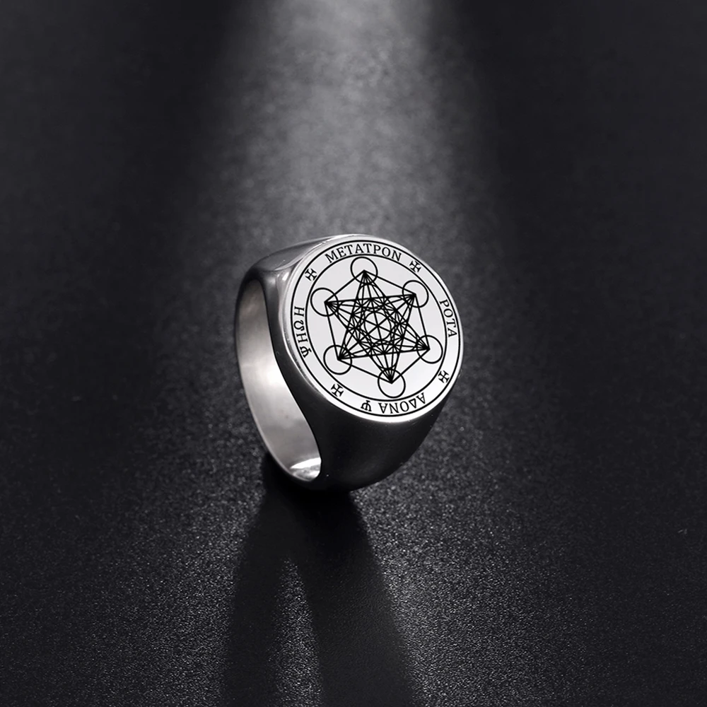 Кольцо LIKGREAT Archangel Metatron с ангелом жизни, мужское кольцо в стиле панк с гравировкой из нержавеющей стали, мужское кольцо с вывеской викингов, ювелирные изделия