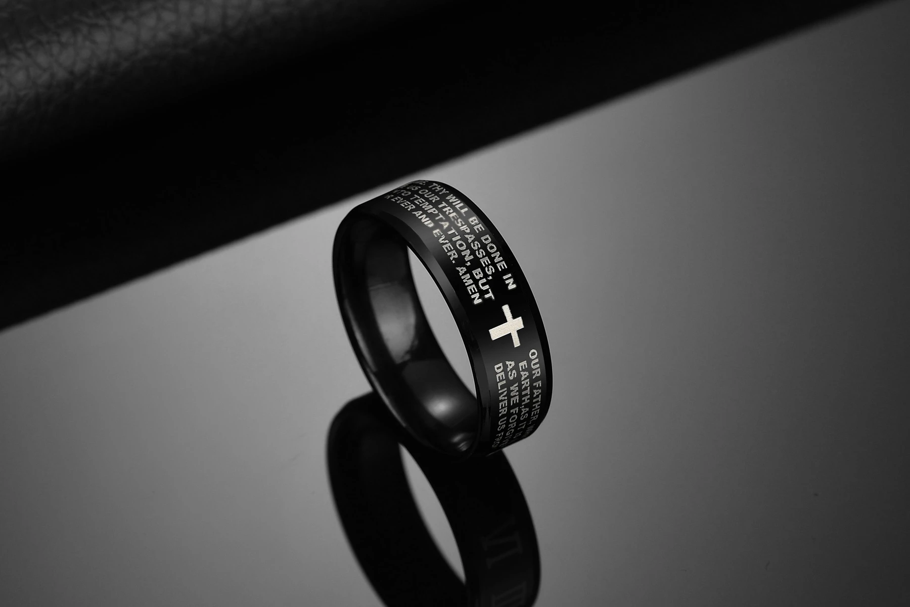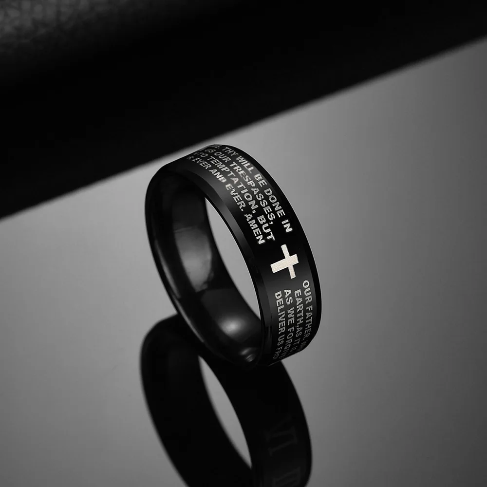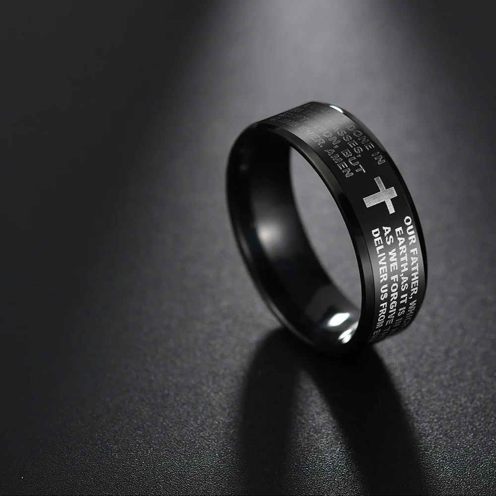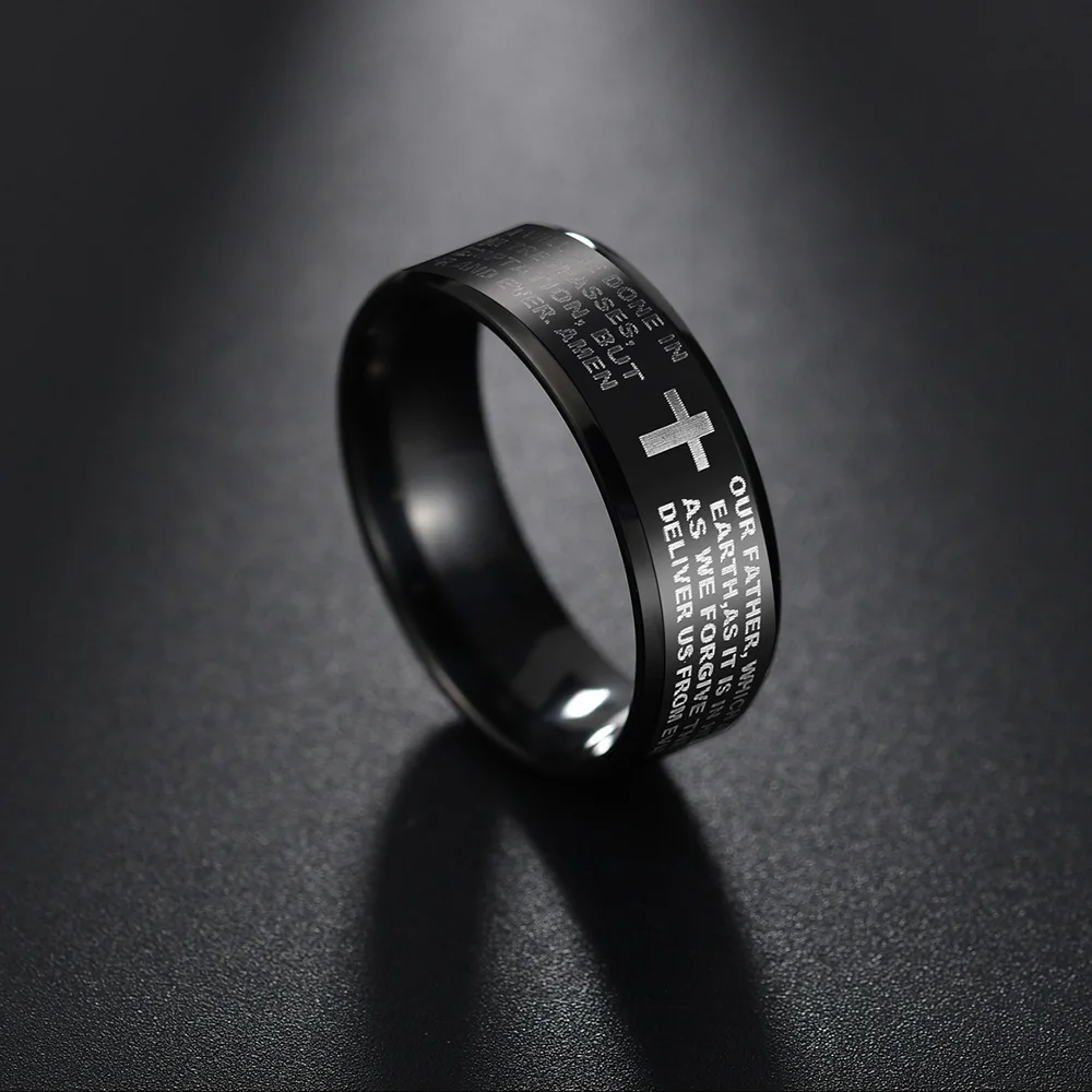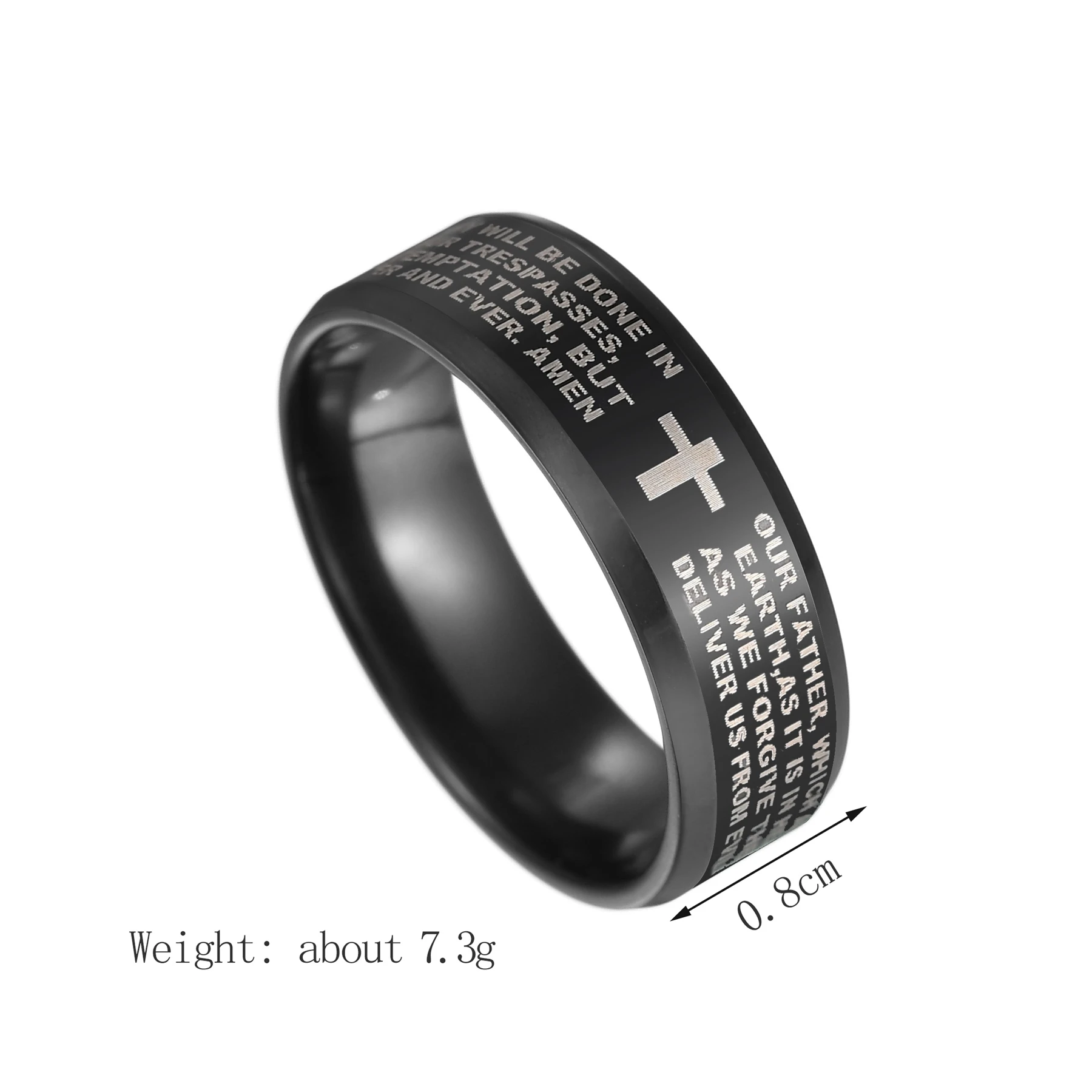 Мужское кольцо с амулетом UAGE, из нержавеющей стали, черного цвета, с буквами Иисуса Библия молитва, 8 мм