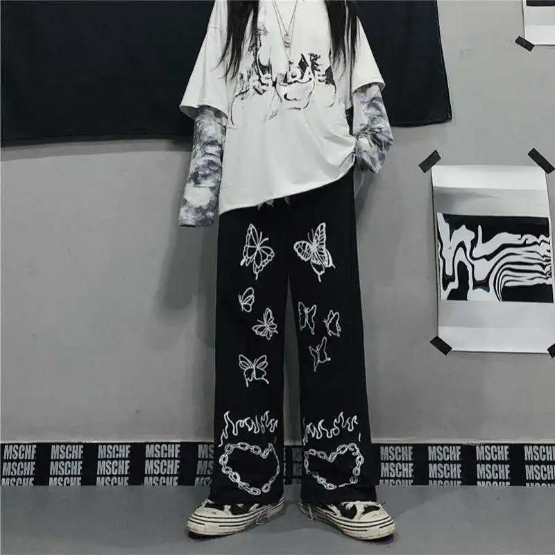 Брюки женские Harajuku с японским рисунком в стиле хип-хоп, широкие...