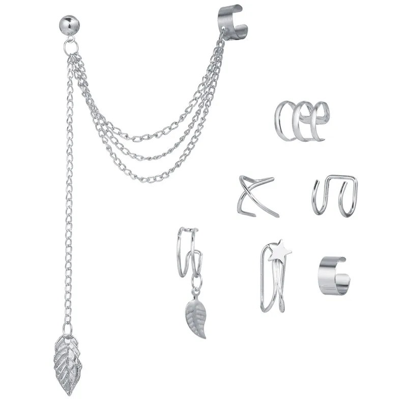 Набор каффов для ушей для женщин и девочек, простой: золото, серебр...