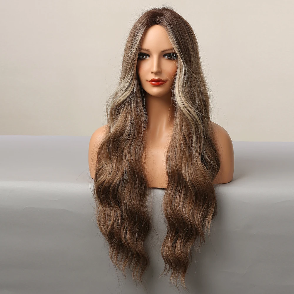 Длинные волнистые синтетические парики henmargu, смешанные коричнев...