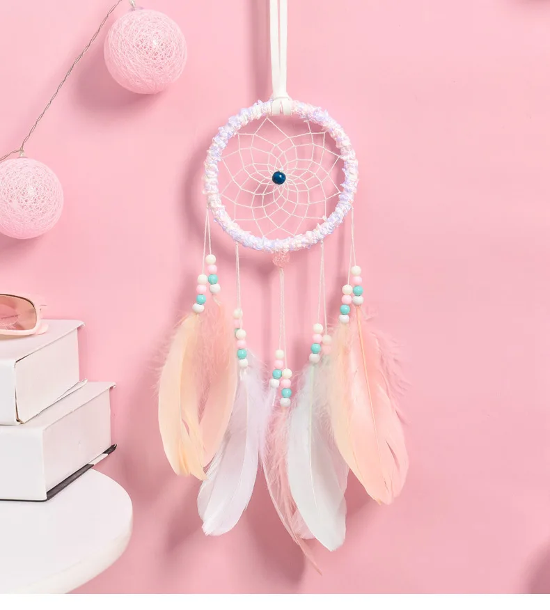 Маленькая прозрачная спальня Ловец снов перо цветок розовая девушка лампа в форме сердца украшение комнаты Аксессуары