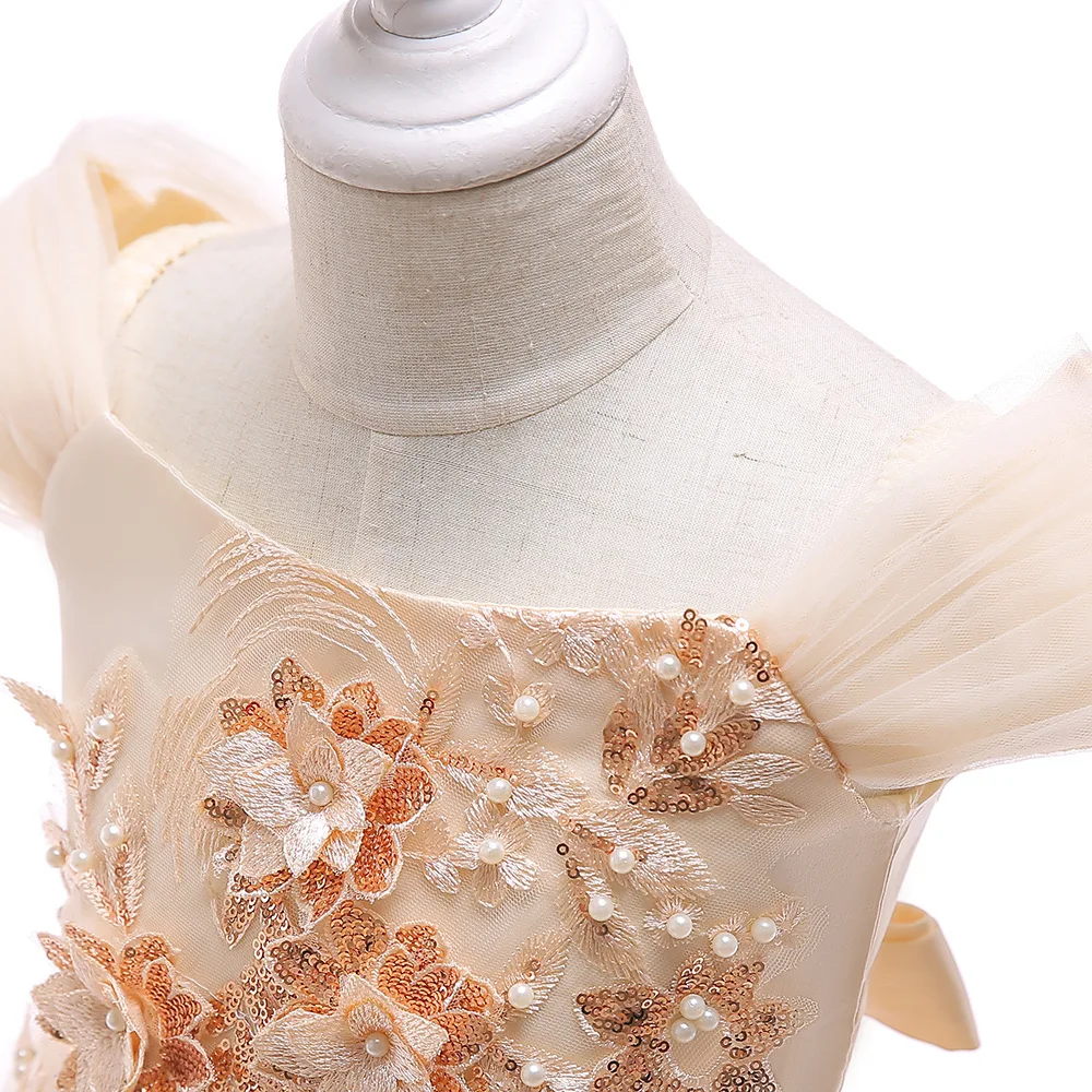 Летнее белое платье с длинным рукавом и цветочным принтом для девочек