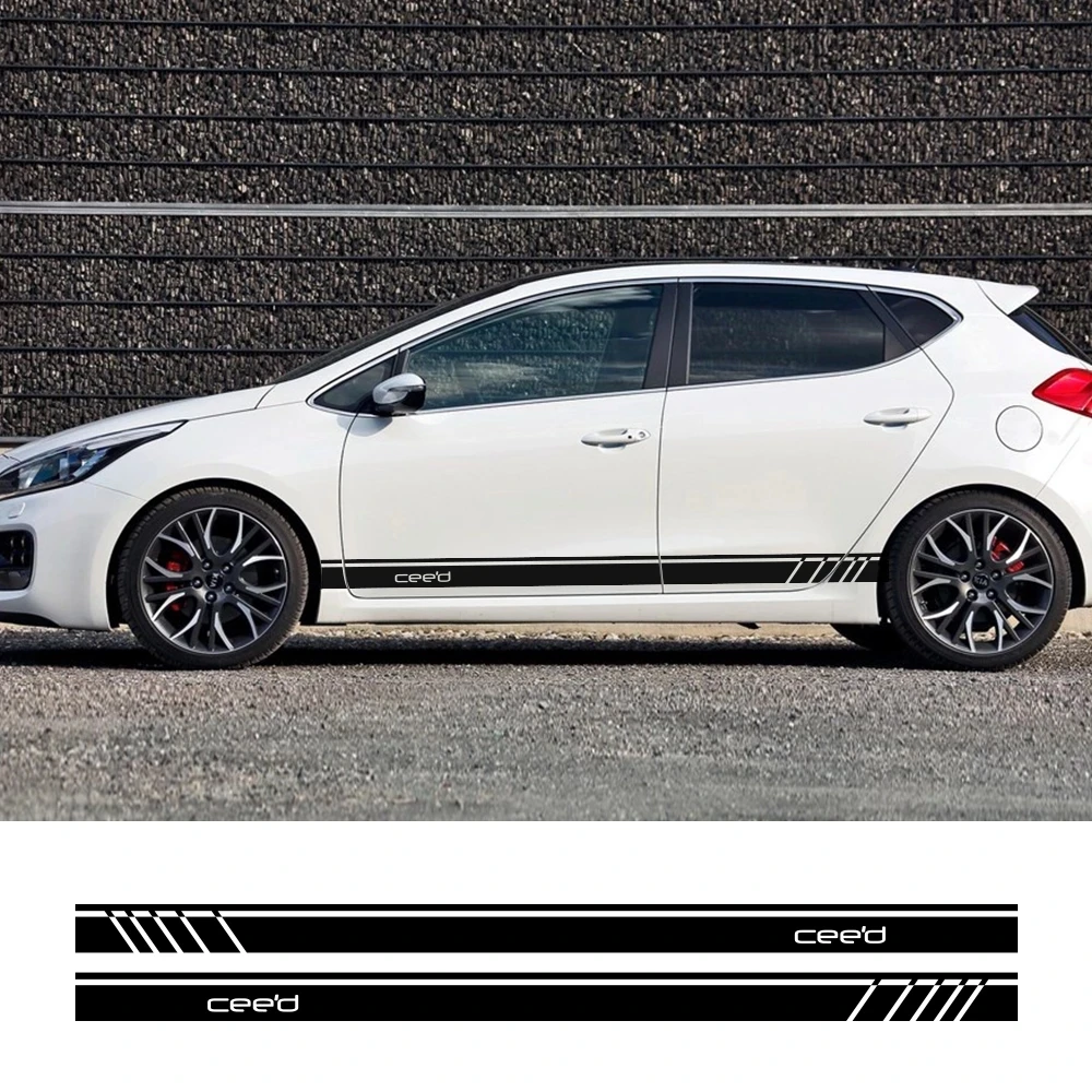 2 шт. автомобильный боковой полосы Стикеры для Kia Ceed авто Виниловая пленка для мотогонок, Графика для стайлинга украшения тюнинг автомобильный аксессуар