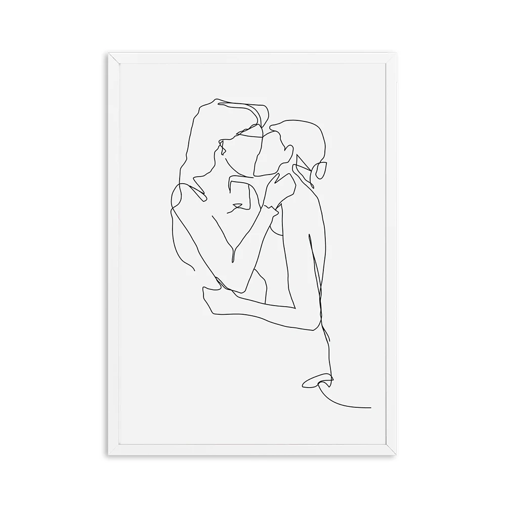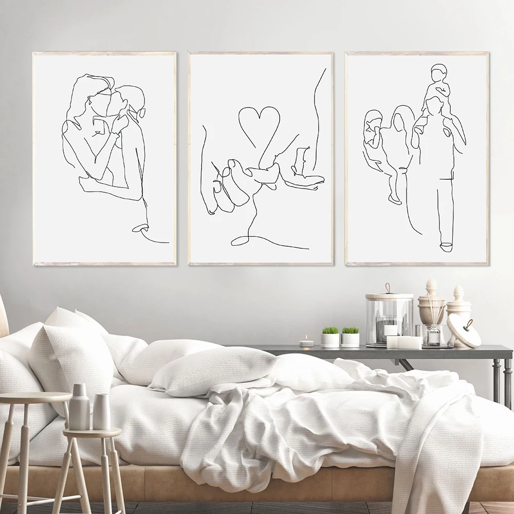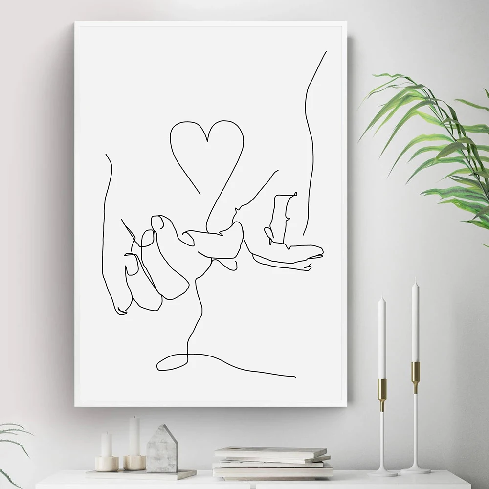 Семейный художественный постер love Hand, рисование линий, абстрактный поцелуй, Минималистичная Настенная картина, рисунок на холсте, искусство