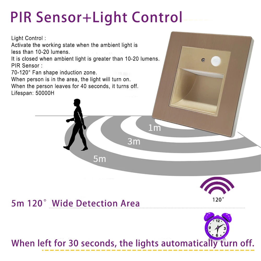 Светодиодный настенный светильник из нержавеющей стали, встроенный ИК-датчик, умная лампа 1,5 Вт 2,5 Вт, внутренняя лестница, коридор, кухня
