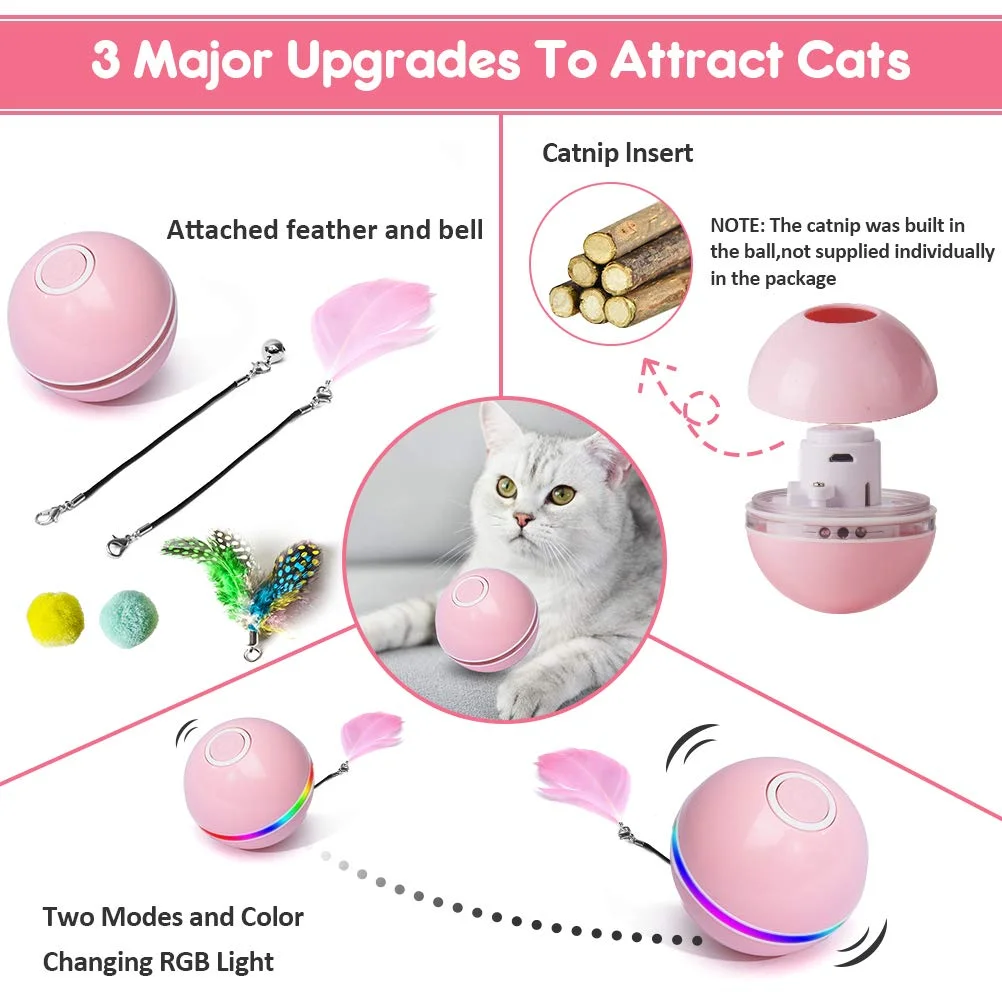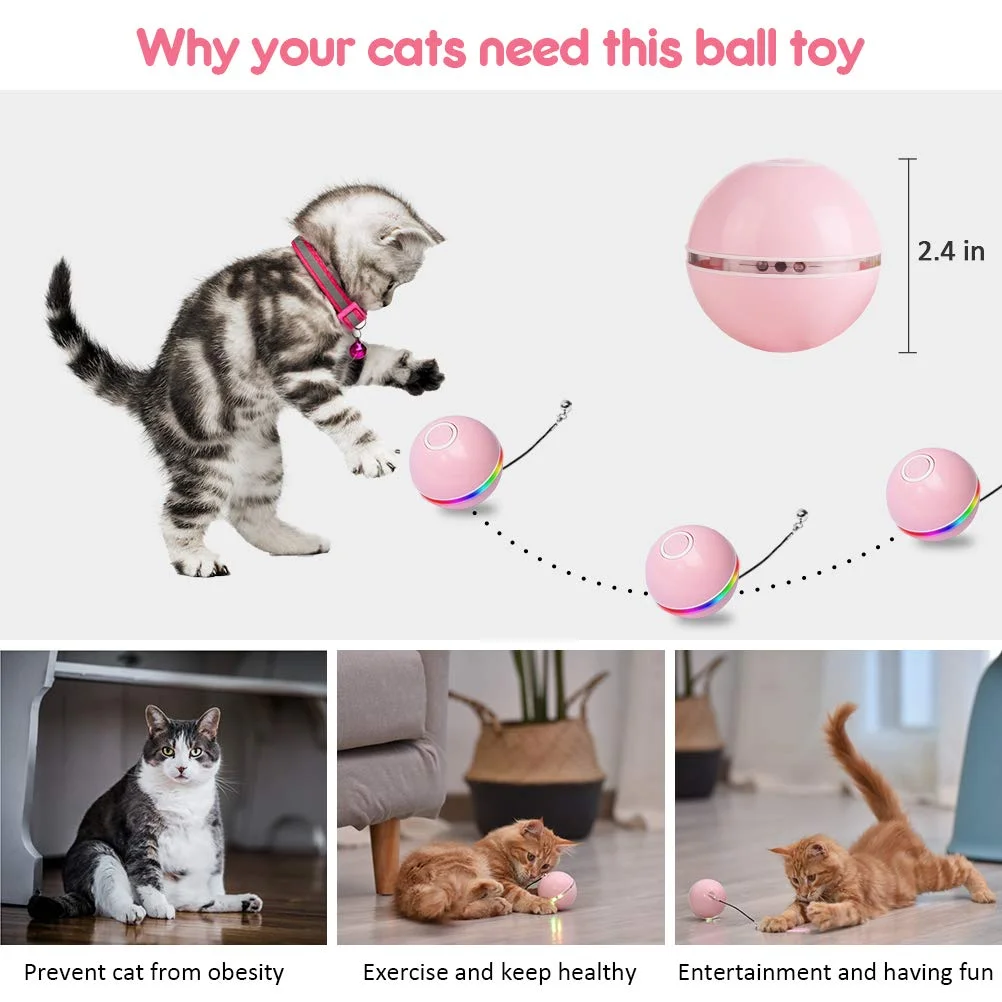 Очаруйте внимание вашего котенка и держите его развлекаться, пока вы находитесь вдали с домашним животным кошачьим мячом, который случайным образом самостоятельно вращается с вращающимся светодиодным красным светильник.